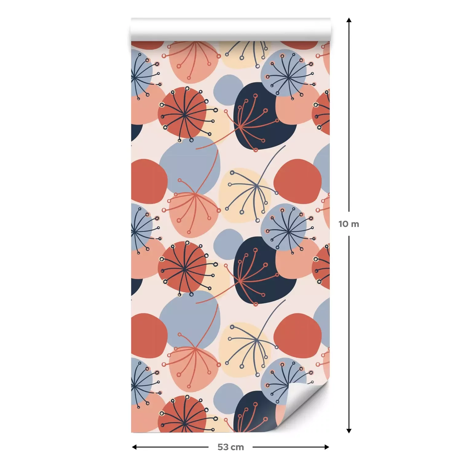 Een standaardrol behang heeft een afmeting van 0,53 m x 10 m, wat voldoende is om ongeveer 5 m² muur te bedekken.