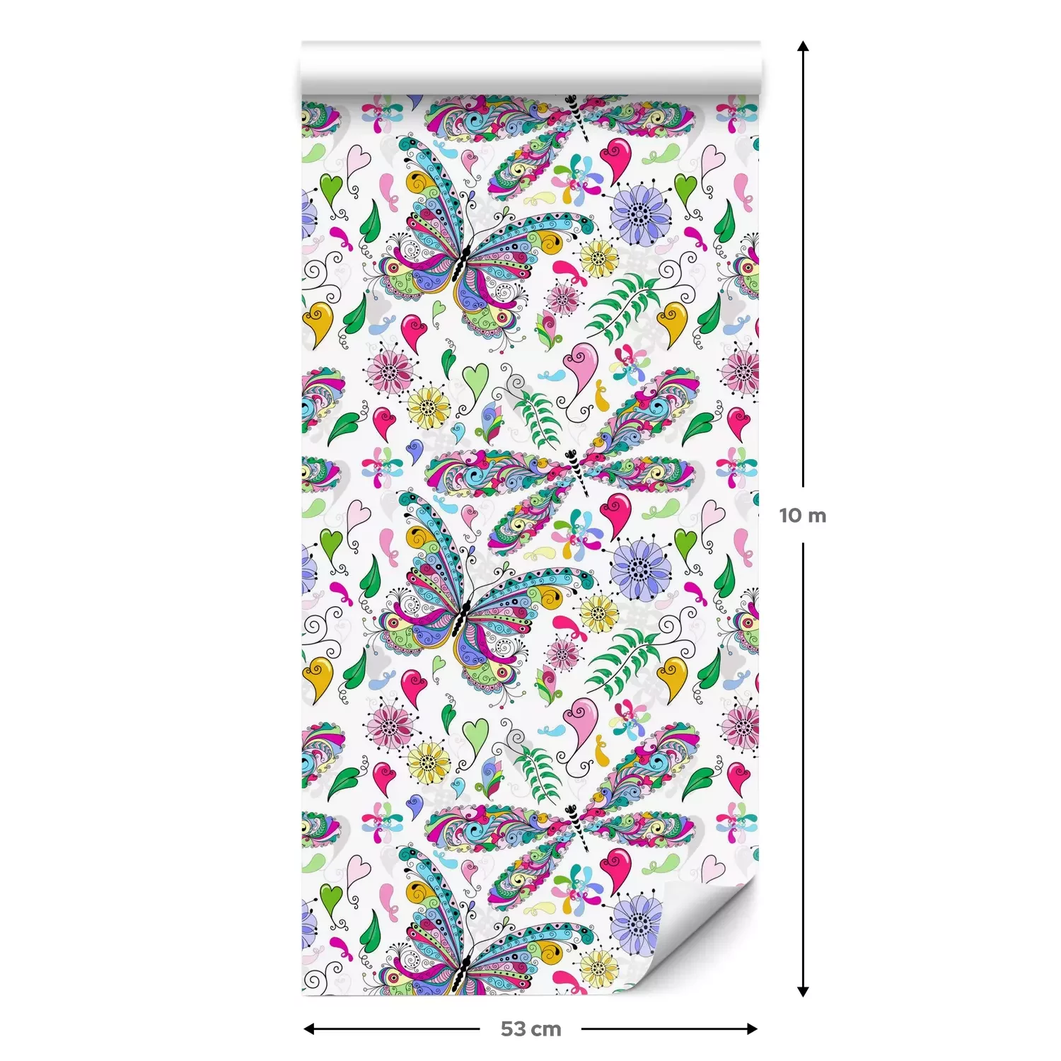 Een standaardrol behang heeft een afmeting van 0,53 m x 10 m, wat voldoende is om ongeveer 5 m² muur te bedekken.