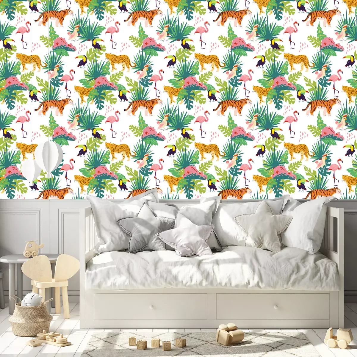 *Korting is niet van toepassing op lijmen, accessoires en cadeaubonnen.Het behang is gemaakt van hoogwaardig vliesmateriaal – duurzaam, stevig en eenvoudig aan te brengen. Op de productpagina vind je een gebruiksvriendelijke calculator die automatisch het aantal benodigde rollen berekent, zodat het winkelen nog makkelijker wordt. Het behang heeft een herhalend patroon dat we aanbieden in drie dichtheidsvarianten – normaal, gemiddeld en groot – waardoor je het motief perfect kunt afstemmen op de grootte van de ruimte. In onze winkel vind je duizenden ontwerpen, allemaal overzichtelijk ingedeeld in praktische categorieën.