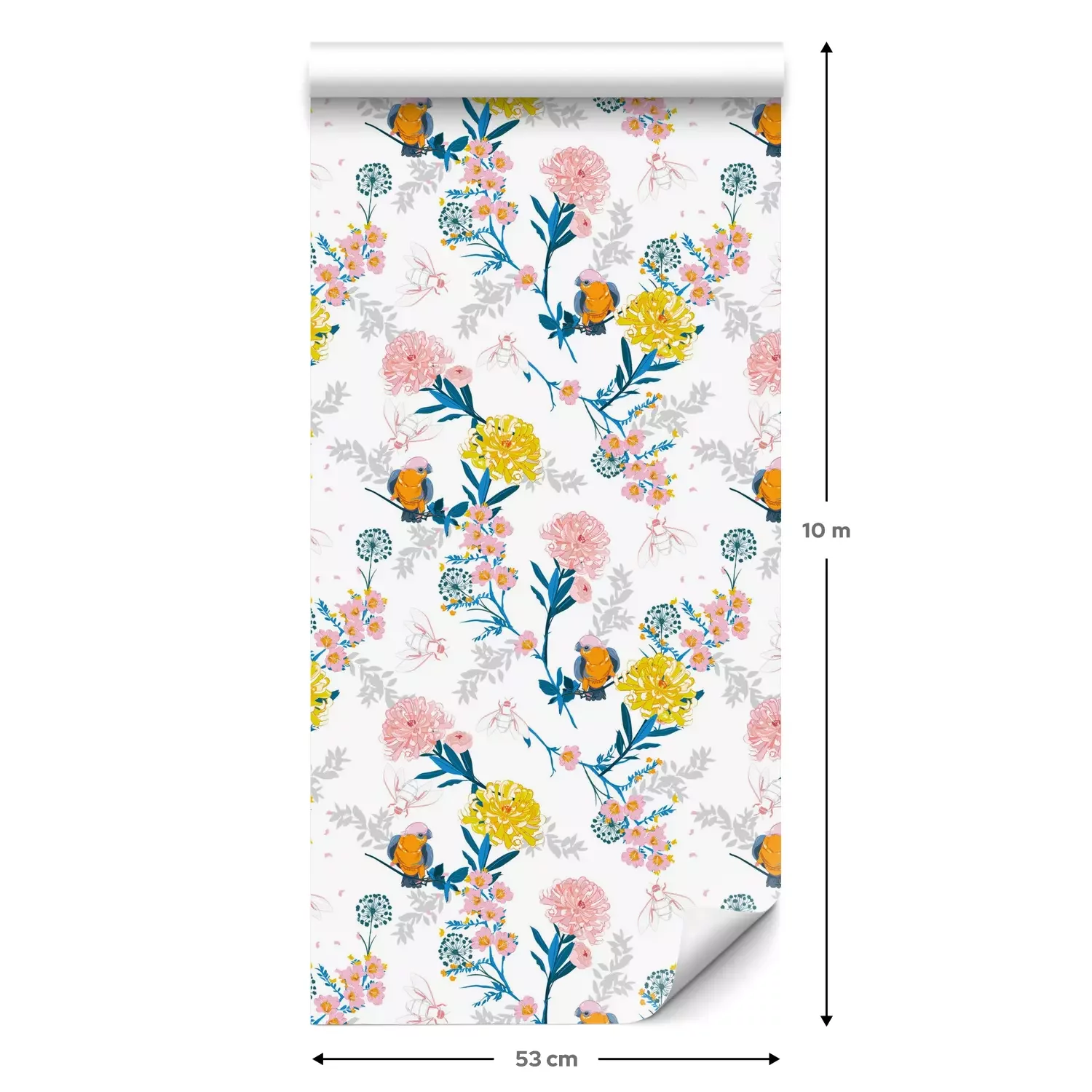 Een standaardrol behang heeft een afmeting van 0,53 m x 10 m, wat voldoende is om ongeveer 5 m² muur te bedekken.