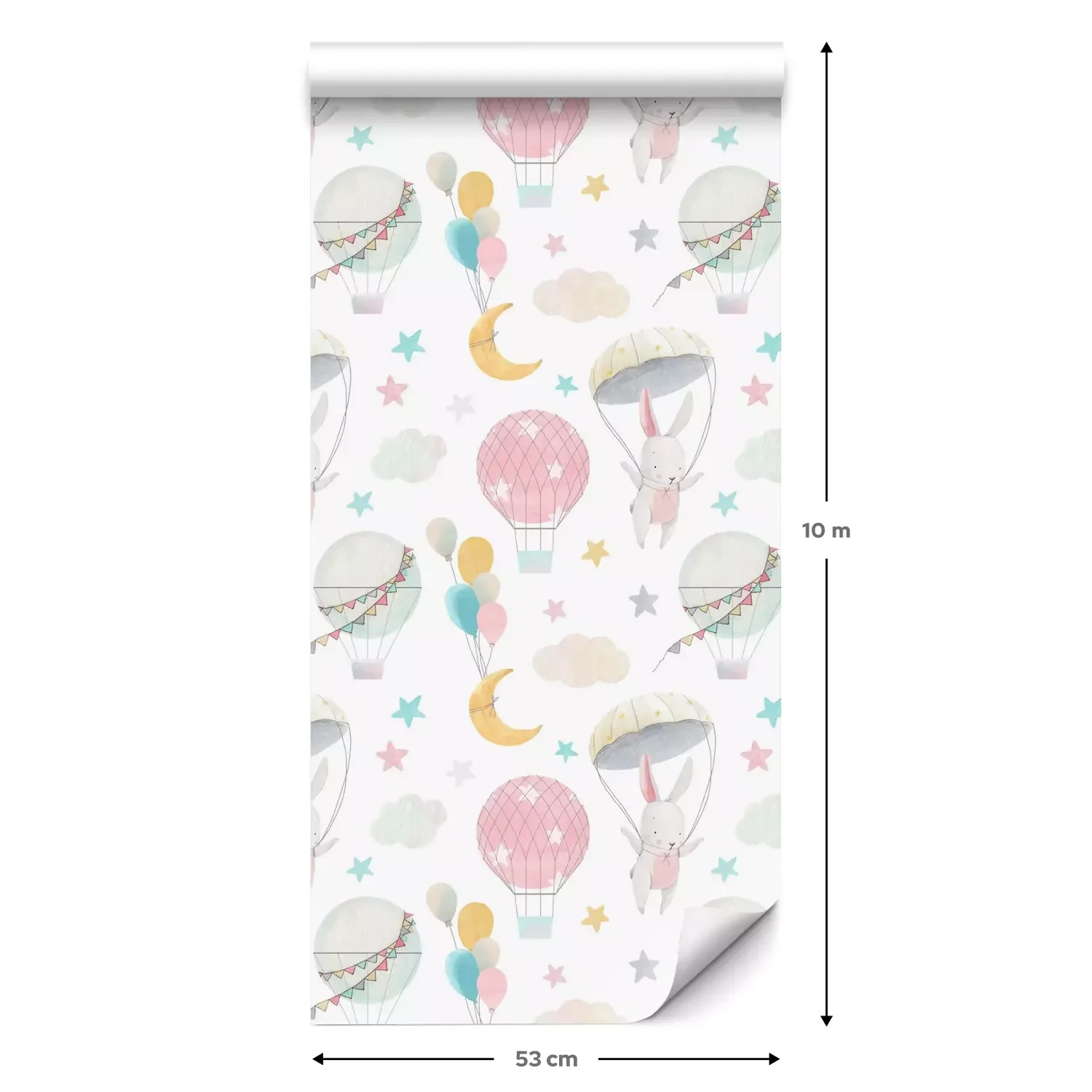 Een standaardrol behang heeft een afmeting van 0,53 m x 10 m, wat voldoende is om ongeveer 5 m² muur te bedekken.