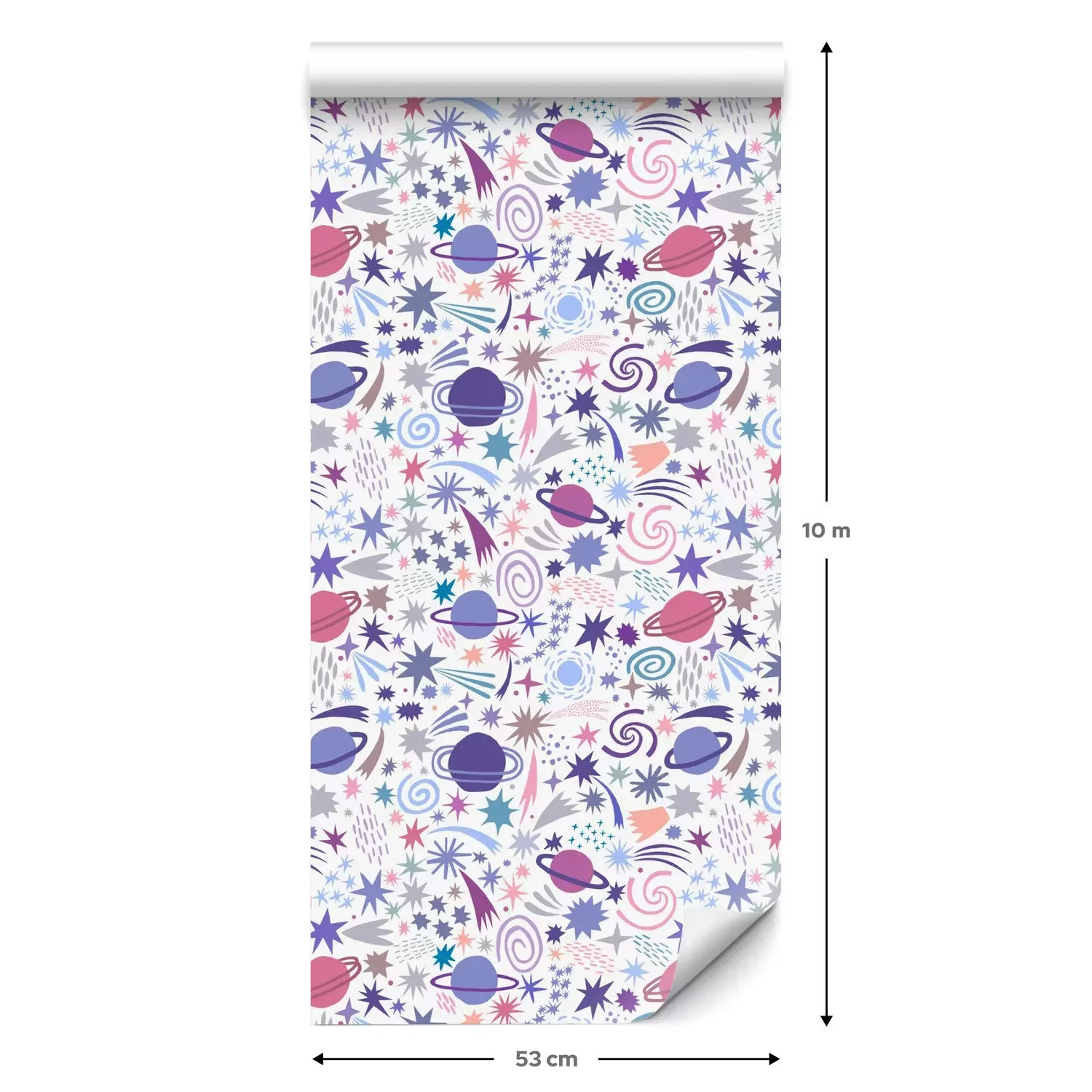 Een standaardrol behang heeft een afmeting van 0,53 m x 10 m, wat voldoende is om ongeveer 5 m² muur te bedekken.