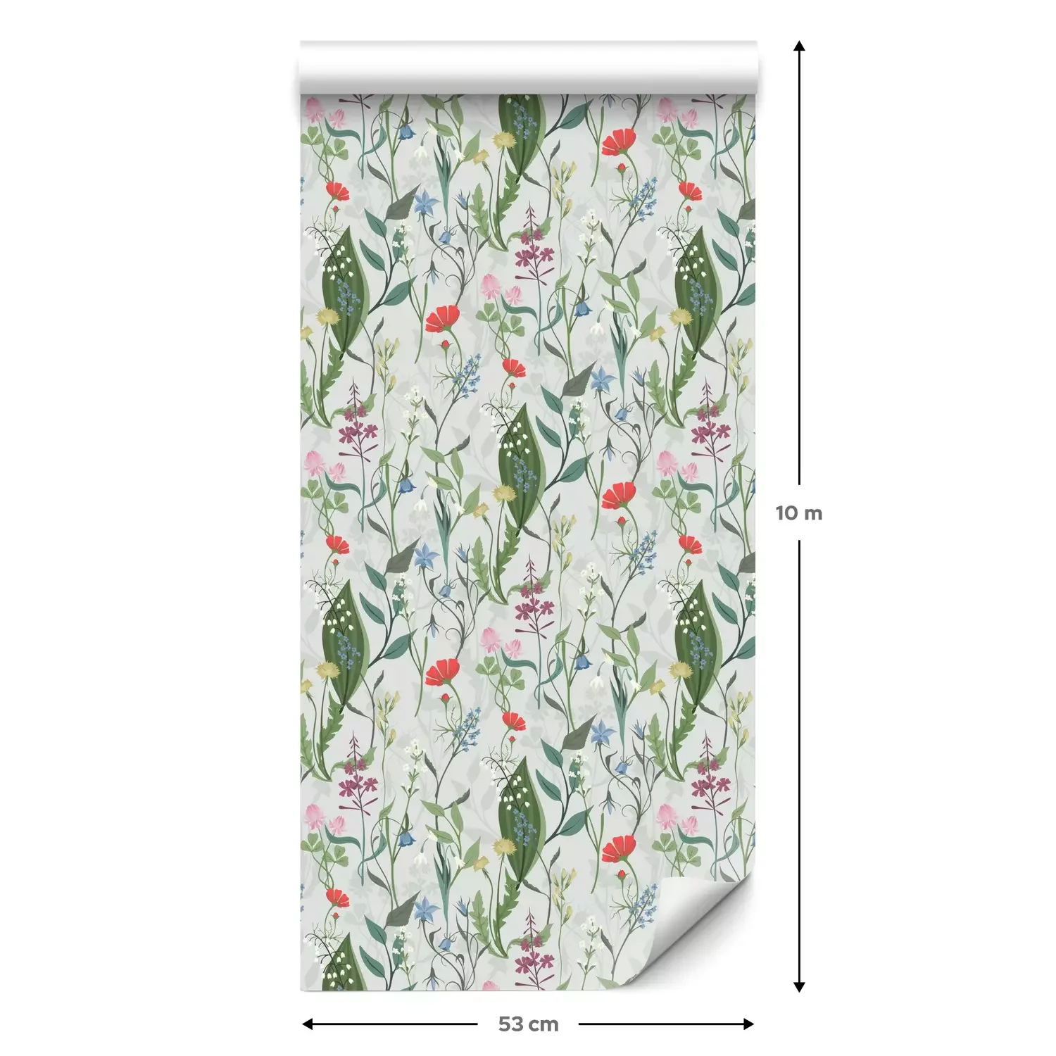 Een standaardrol behang heeft een afmeting van 0,53 m x 10 m, wat voldoende is om ongeveer 5 m² muur te bedekken.