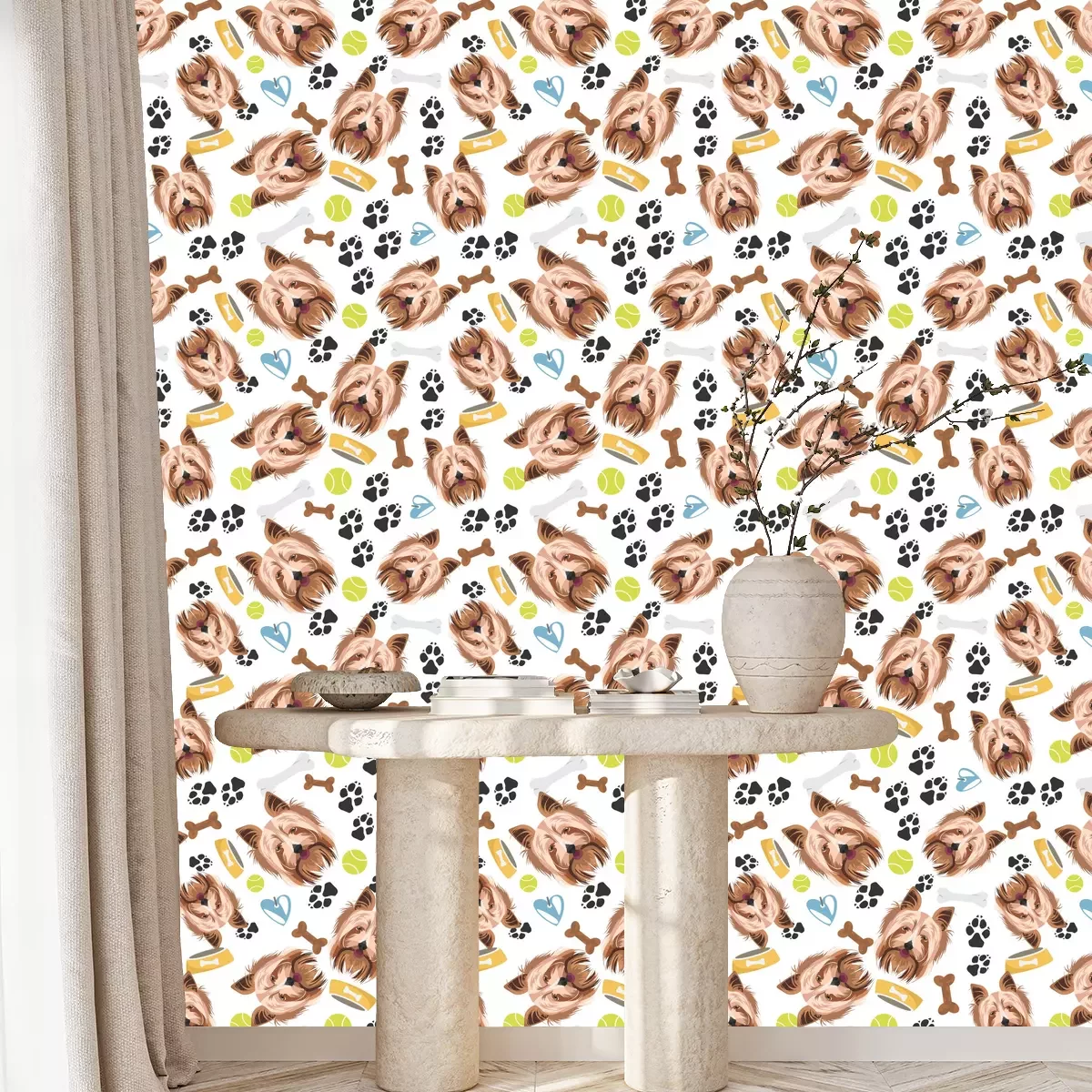 Behang met honden, balletjes, kommen en hartjes op een witte achtergrond is een uitstekende keuze voor een dierenartsenpraktijk. Het is niet alleen een esthetisch, maar ook een functioneel element van de interieurinrichting dat aanzienlijk kan bijdragen aan de sfeer en het comfort van zowel de patiënten als het personeel. In een dierenartsenpraktijk zal dit behang met honden perfect passen en een vriendelijke en kalmerende omgeving creëren. Motieven met honden, speelgoed en pootafdrukken zijn niet alleen visueel aantrekkelijk, maar roepen ook positieve associaties op bij patiënten - zowel die op vier poten, als hun verzorgers. De witte achtergrond voegt ruimte en netheid toe, wat belangrijk is in een medische faciliteit. Om het volledige potentieel van dit behang te benutten, kun je enkele extra's aan de dierenartsenpraktijk toevoegen. Je kunt meubels kiezen in zachte, vriendelijke kleuren om een samenhangende inrichting te creëren. Pastelkleurige fauteuils, salontafels en planken zullen perfect harmoniëren met het behang en warmte en gezelligheid toevoegen aan de ruimte. Natuurlijk mogen op de muren geen schilderijen en posters ontbreken die verband houden met dieren. Deze kunnen niet alleen decoratief zijn, maar ook educatieve elementen die klanten kunnen interesseren en vertrouwen kunnen opbouwen in de praktijk. Zorg ook goed voor de honden zelf. Het behang met hondjesuggereert al dat er kommen water en snacks voor de patiënten op de vloer moeten worden geplaatst. Hondenbehang kan ook op andere plaatsen worden geplaatst, niet alleen waar viervoeters rondlopen. Behang met honden is ideaal voor kleuterscholen of andere educatieve instellingen voor kinderen. Het zal glimlachen op de gezichten van de jongsten toveren en kan worden gebruikt als een leermiddel over verschillende hondenrassen, hun behoeften en verzorging. Het hondenbehang kan verschijnen op een plek waar een speelruimte voor de dierenarts wordt georganiseerd. Het is de moeite waard om naast de veterinaire instrumenten en de stethoscoop met een pootje ook grote manden met knuffels te plaatsen - uiteraard moeten het honden zijn. Behang in deze stijl stelt kinderen in staat zich in te leven en empathie te leren voor dieren. Op beide van deze plaatsen zal het hondenbehang de aandacht trekken en een aangename omgeving creëren die een positieve invloed kan hebben op klanten of deelnemers. Haar universele karakter maakt het een veelzijdig decoratief element dat kan worden aangepast aan veel verschillende interieurstijlen en de functie van de ruimte.
