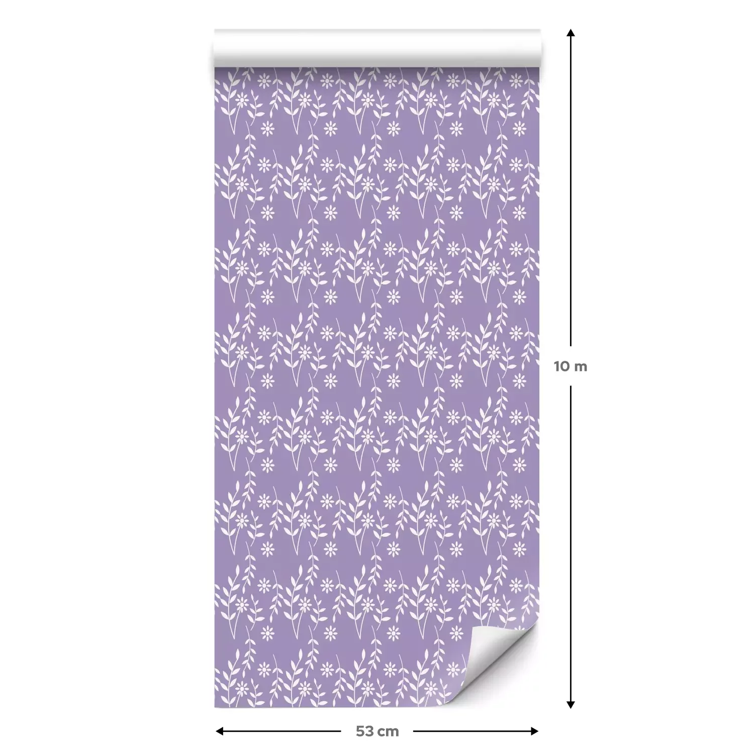 Een standaardrol behang heeft een afmeting van 0,53 m x 10 m, wat voldoende is om ongeveer 5 m² muur te bedekken.
