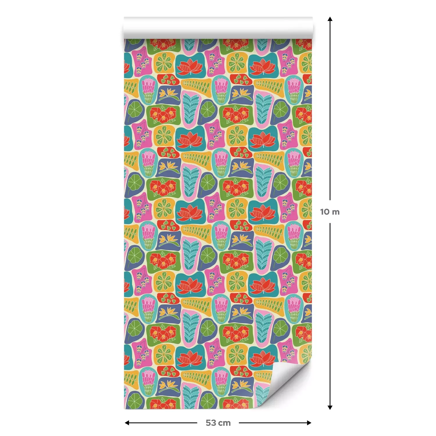 Een standaardrol behang heeft een afmeting van 0,53 m x 10 m, wat voldoende is om ongeveer 5 m² muur te bedekken.