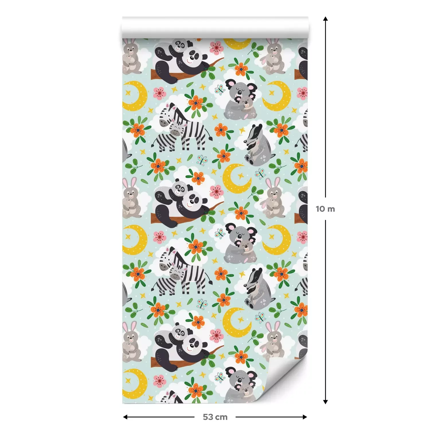 Een standaardrol behang heeft een afmeting van 0,53 m x 10 m, wat voldoende is om ongeveer 5 m² muur te bedekken.