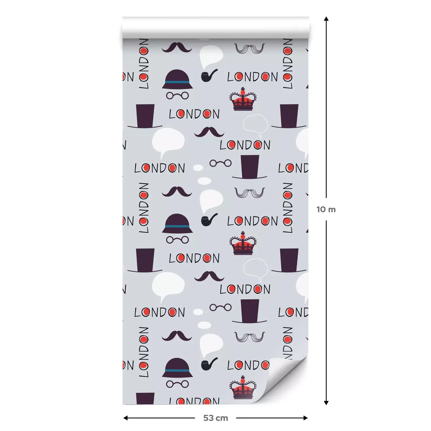 Een standaardrol behang heeft een afmeting van 0,53 m x 10 m, wat voldoende is om ongeveer 5 m² muur te bedekken.
