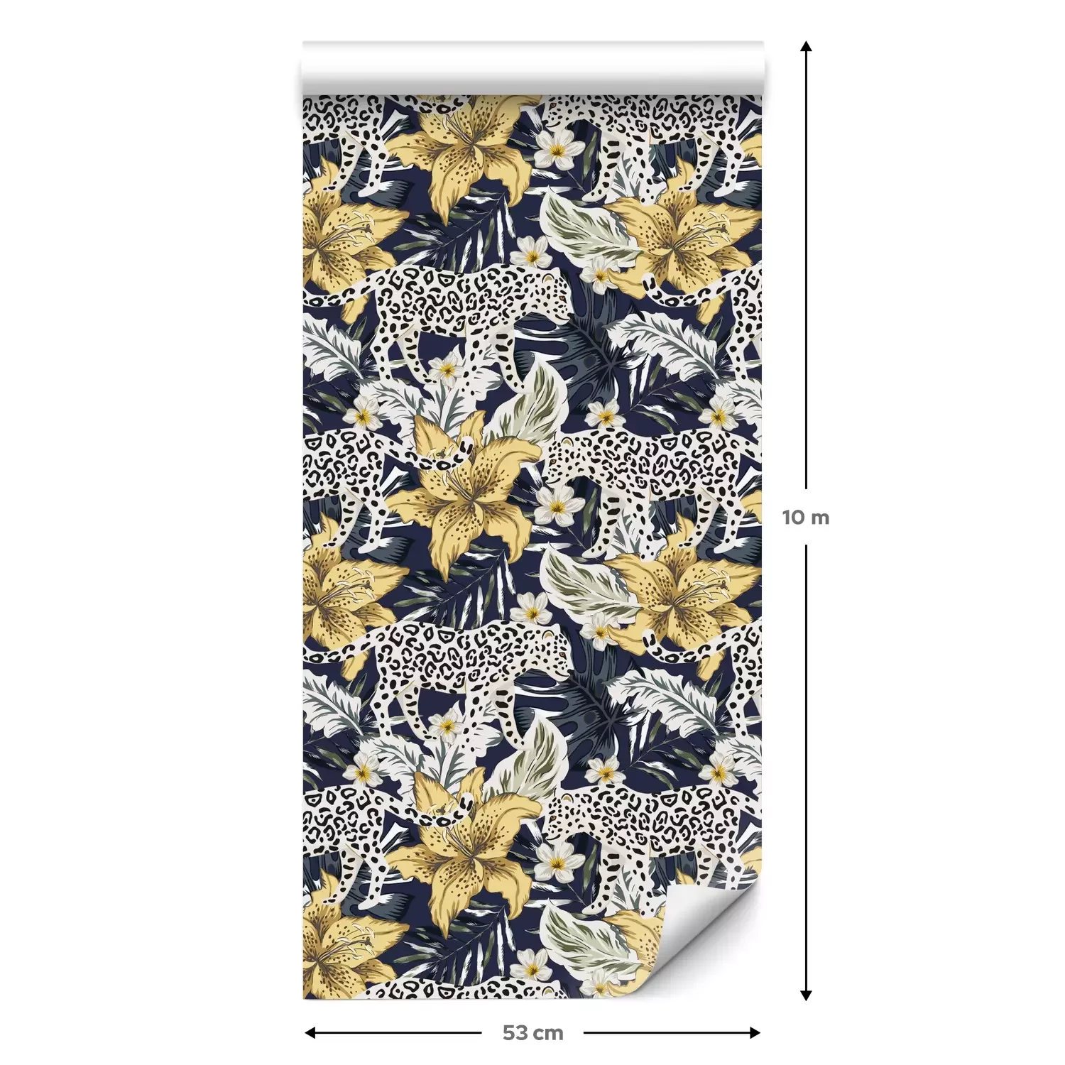 Een standaardrol behang heeft een afmeting van 0,53 m x 10 m, wat voldoende is om ongeveer 5 m² muur te bedekken.
