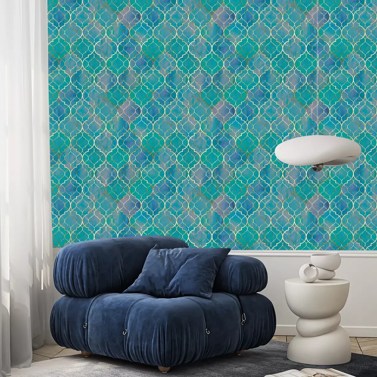 Geometrisch blauw golfmotiefBehang