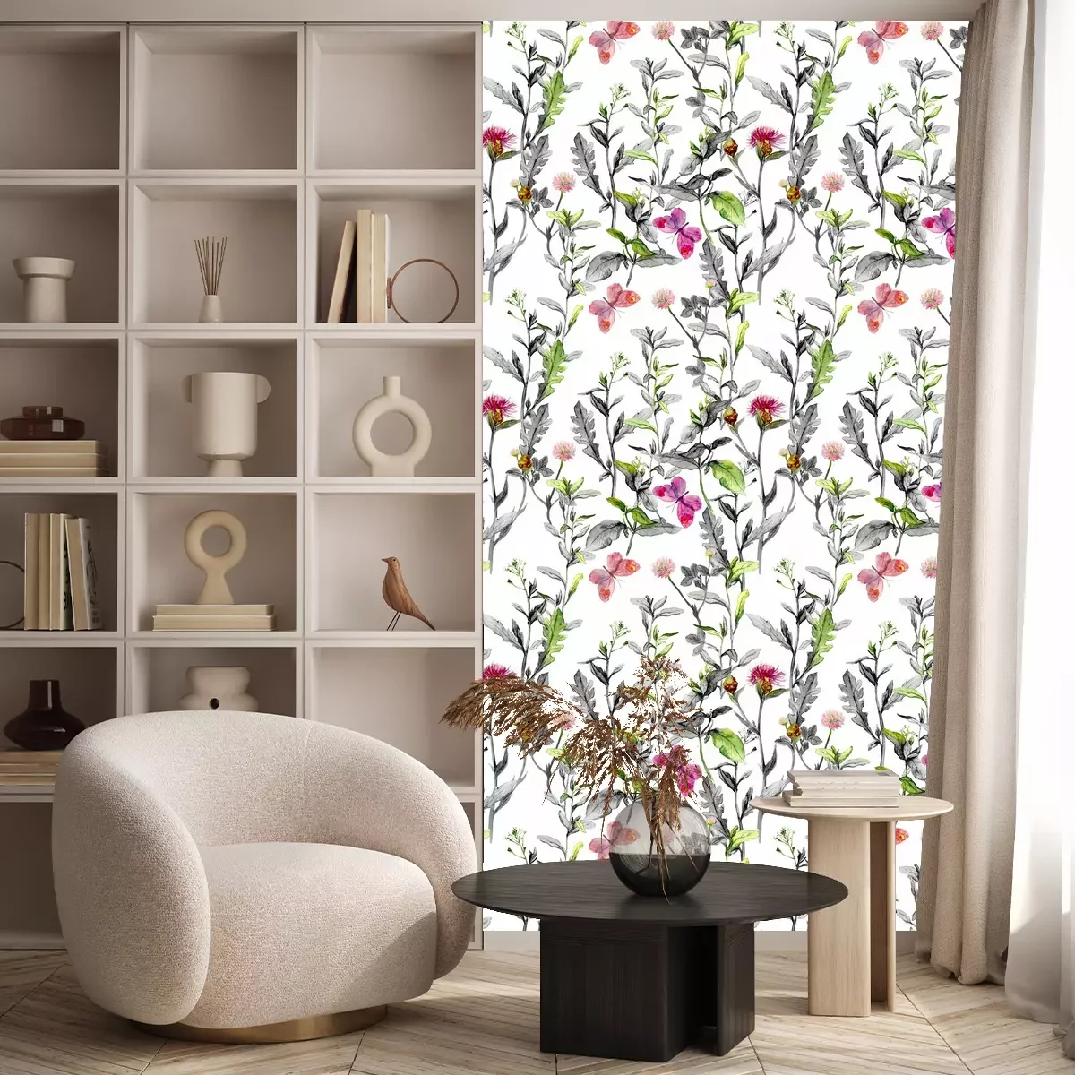 Dit charmante behang met planten met bloeiende distels op een witte achtergrond is als een lentegroet aan de natuur in je interieur. De combinatie van tere distelbloemen met kleurrijke vlinders creëert een sfeer van weelderige en wilde vegetatie, die doet denken aan een open plek in volle bloei. Het behang planten past perfect in verschillende decoratieve stijlen zoals boho, Scandinavisch en klassiek. Een van de belangrijkste voordelen van dit patroon is dat het elke kamer kan opfleuren. De helderwitte achtergrond van de decoratie voegt ruimte en licht toe, waardoor het een ideale keuze is voor zowel kleinere als grotere interieurs. In de keuken en eetkamer zullen de planten en vlinders een knus, idyllisch gevoel geven en een aangename sfeer creëren tijdens het eten. In de woonkamer creëer je een harmonieuze en vredige sfeer door zo'n behang te kiezen. Planten zullen de aandacht van gasten trekken met hun delicate charme. In de slaapkamer zal dit patroon een romantische sfeer creëren en een charmant accent toevoegen aan de ontspanningsruimte. Planten passen ook goed in een tienerkamer of kantoor aan huis. Het behang met distelbloemen, dat een nieuw begin en frisheid symboliseert, kan inspiratie bieden voor jonge geesten. Op kantoor zorgen planten en vlinders voor een aangename sfeer die creativiteit en concentratie bevordert. Het behang planten past niet alleen perfect in boho, Scandinavische en klassieke stijlen, maar gaat ook gemakkelijk samen met andere decoratieve stijlen. Door zijn minimalisme en natuurlijkheid past het perfect bij een minimalistische stijl en voegt het een aangenaam accent toe. Het kan ook een interessant contrast vormen met modernere en eclectische interieurs en warmte en gezelligheid toevoegen. Planten - behang roept op elk moment van het jaar lente en zomer op en voegt een vleugje harmonie en natuurlijke schoonheid toe aan het interieur.