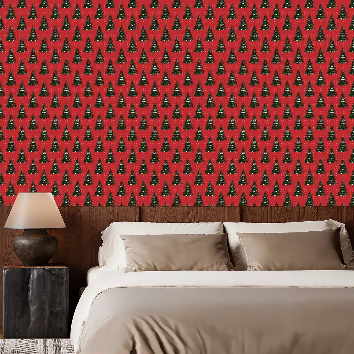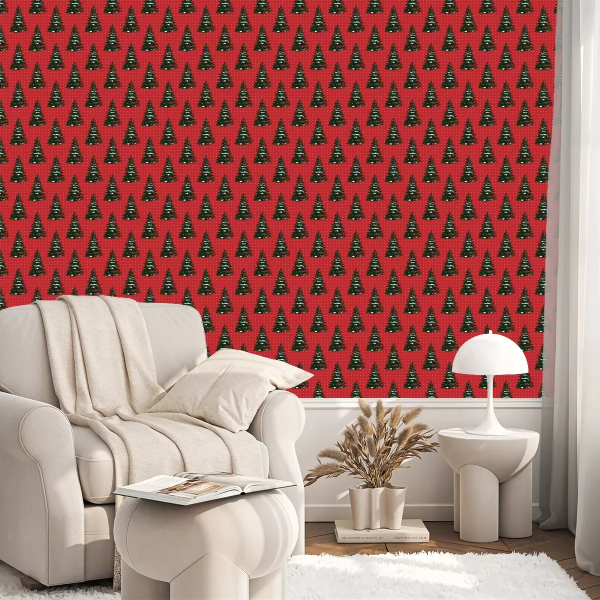 Kerstbomen bedekt met sneeuwBehang