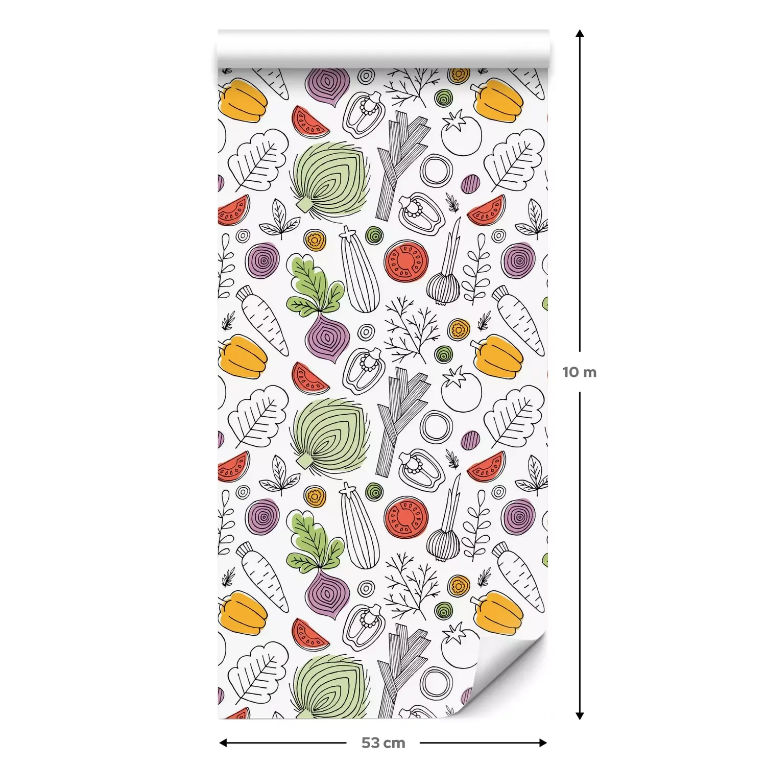 Een standaardrol behang heeft een afmeting van 0,53 m x 10 m, wat voldoende is om ongeveer 5 m² muur te bedekken.
