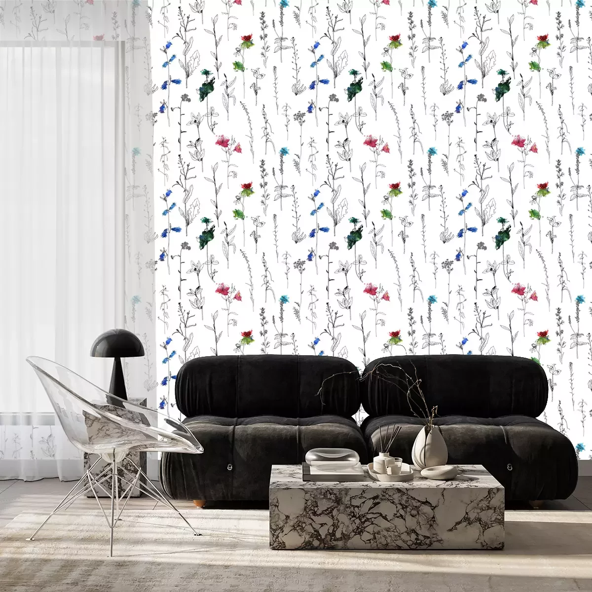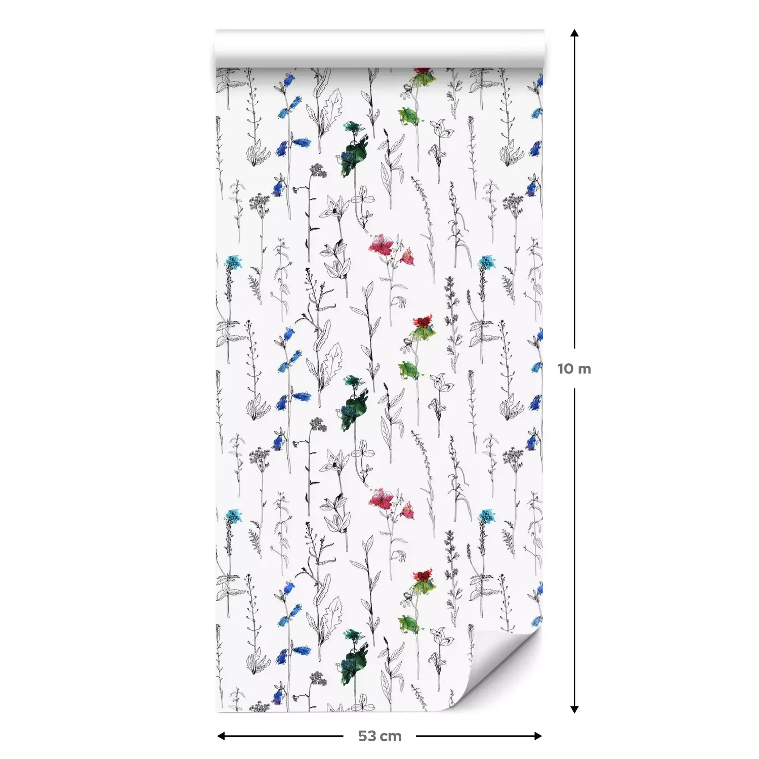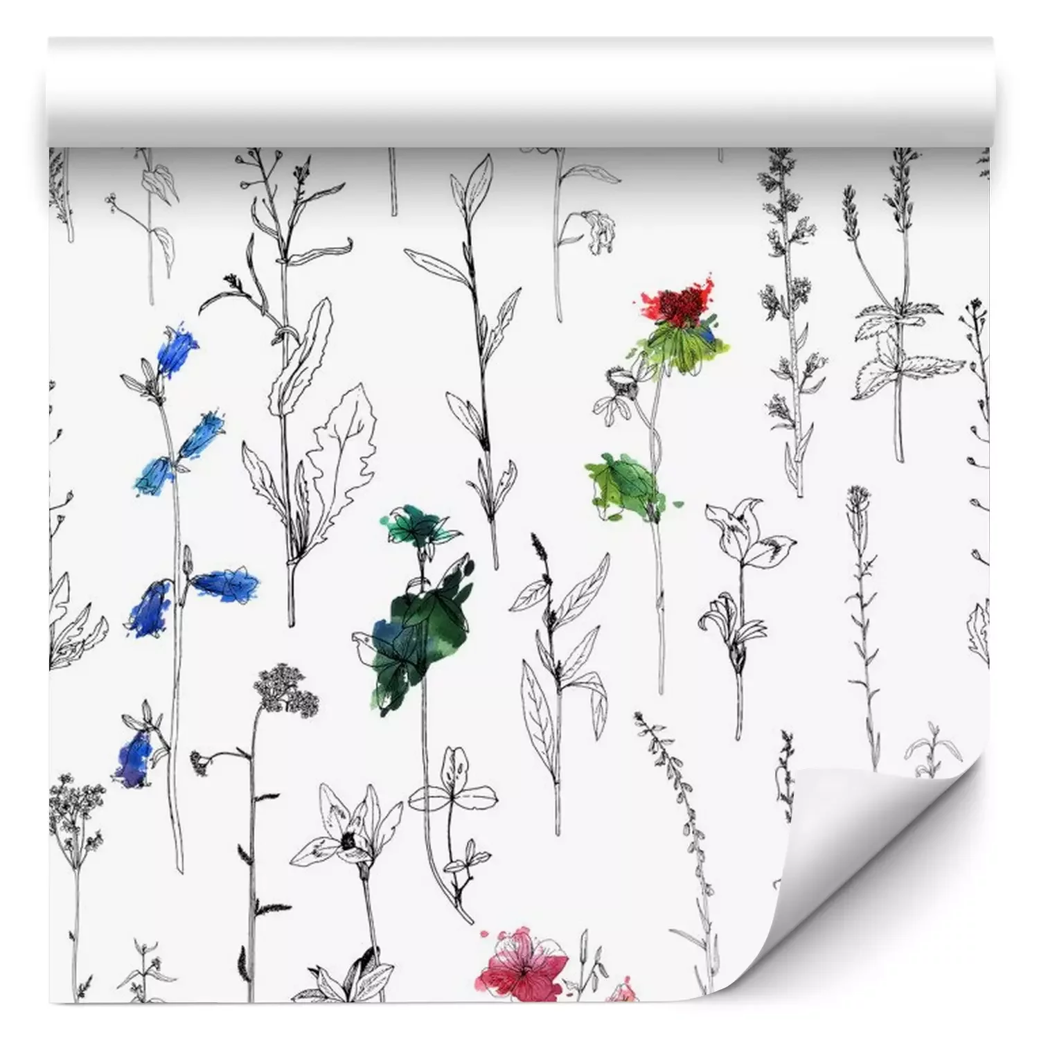 waterverftekening bloemen en plantenFotobehang