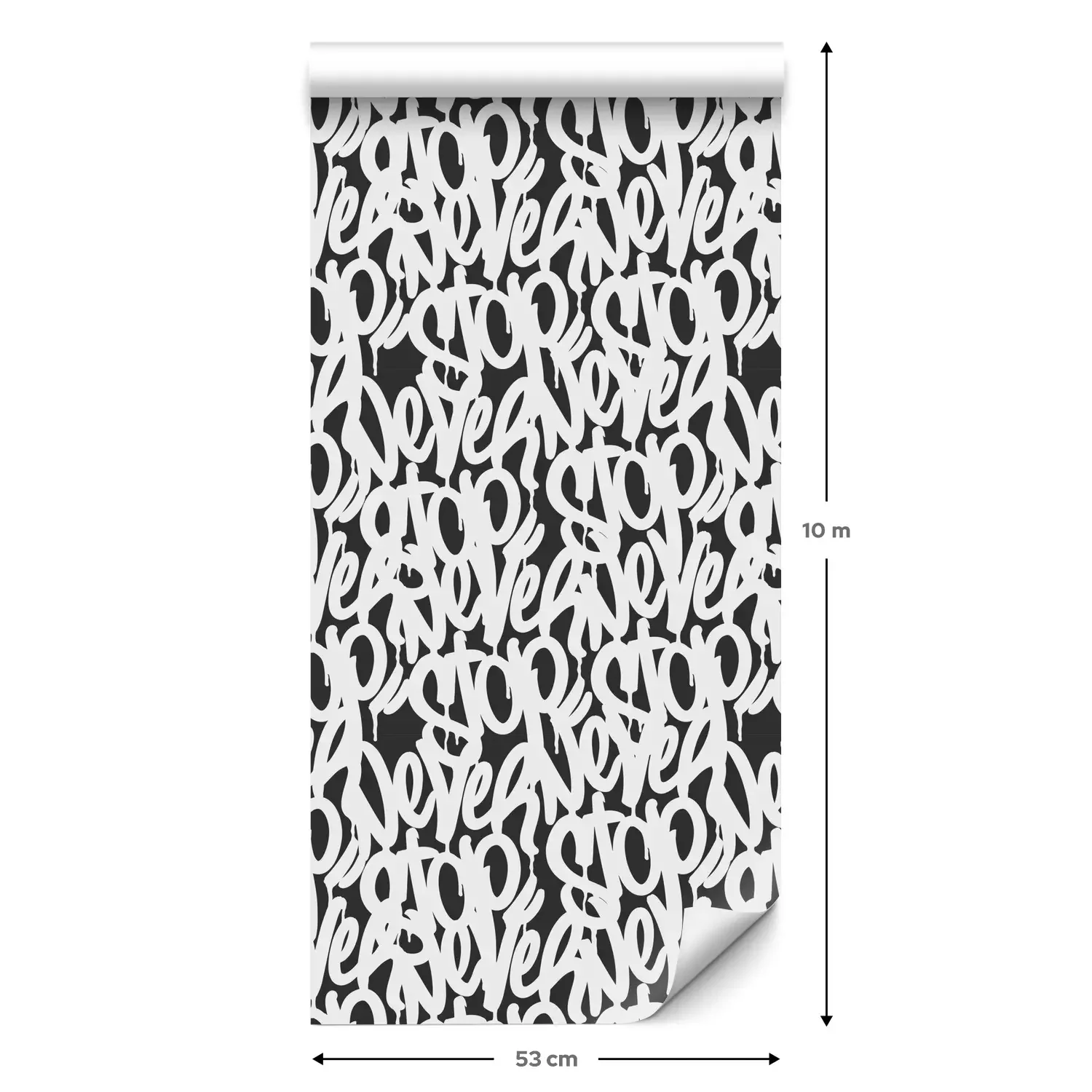 Een standaardrol behang heeft een afmeting van 0,53 m x 10 m, wat voldoende is om ongeveer 5 m² muur te bedekken.
