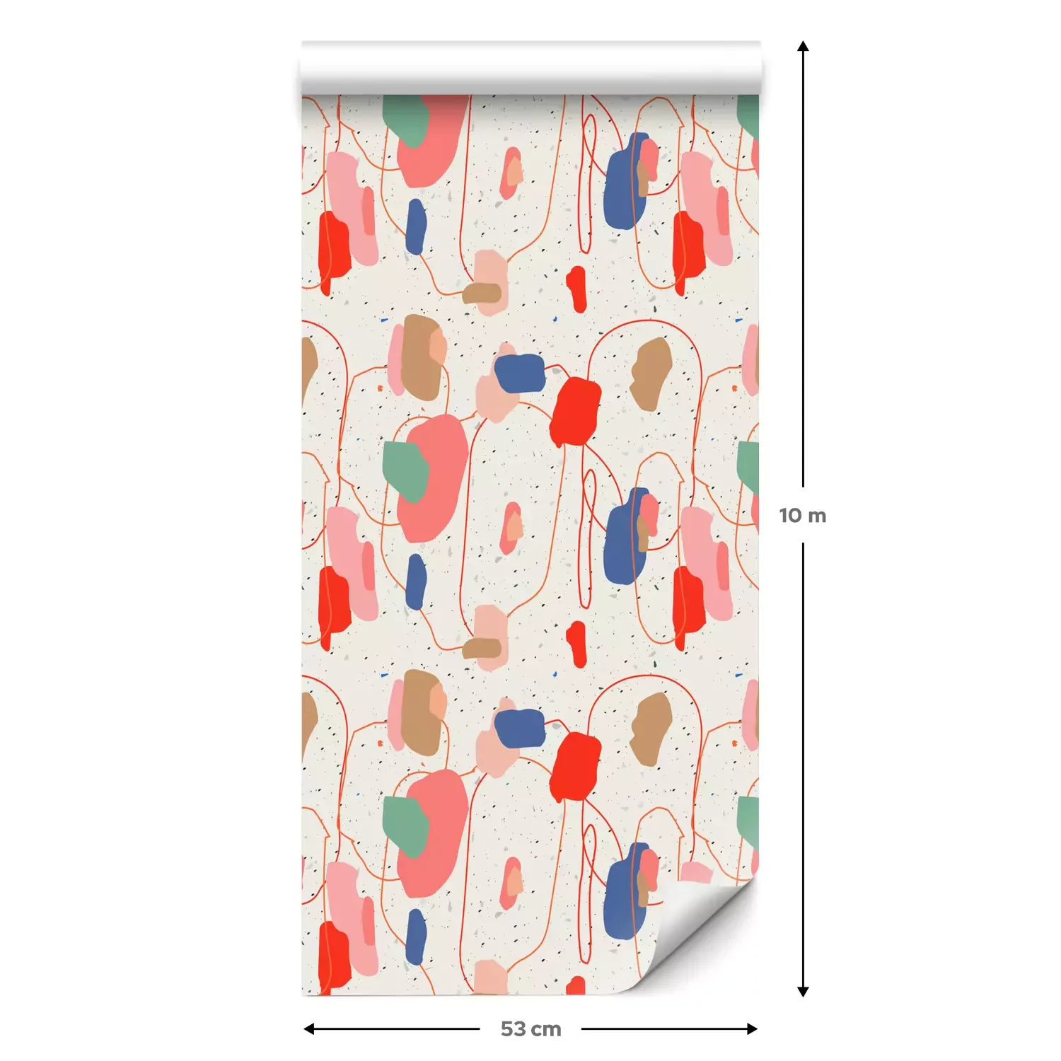 Een standaardrol behang heeft een afmeting van 0,53 m x 10 m, wat voldoende is om ongeveer 5 m² muur te bedekken.