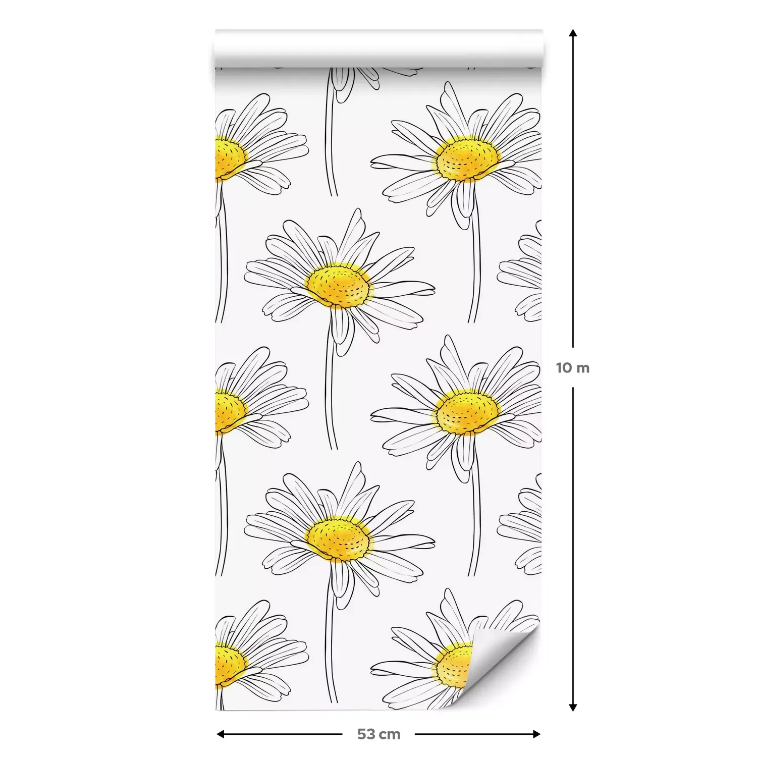 Een standaardrol behang heeft een afmeting van 0,53 m x 10 m, wat voldoende is om ongeveer 5 m² muur te bedekken.