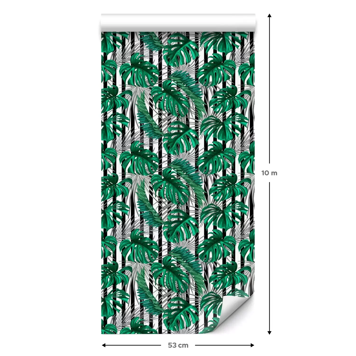 Een standaardrol behang heeft een afmeting van 0,53 m x 10 m, wat voldoende is om ongeveer 5 m² muur te bedekken.