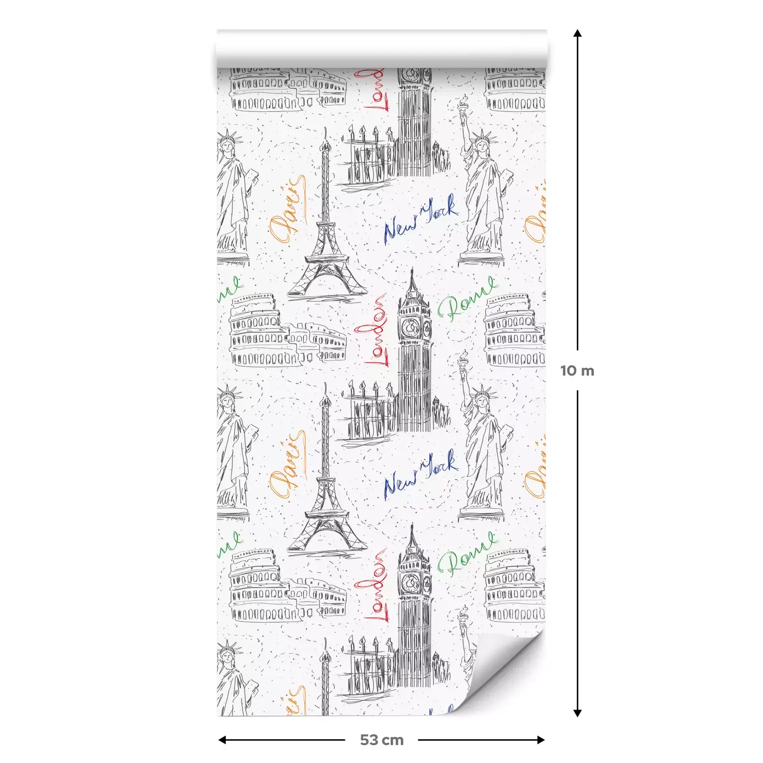 Een standaardrol behang heeft een afmeting van 0,53 m x 10 m, wat voldoende is om ongeveer 5 m² muur te bedekken.
