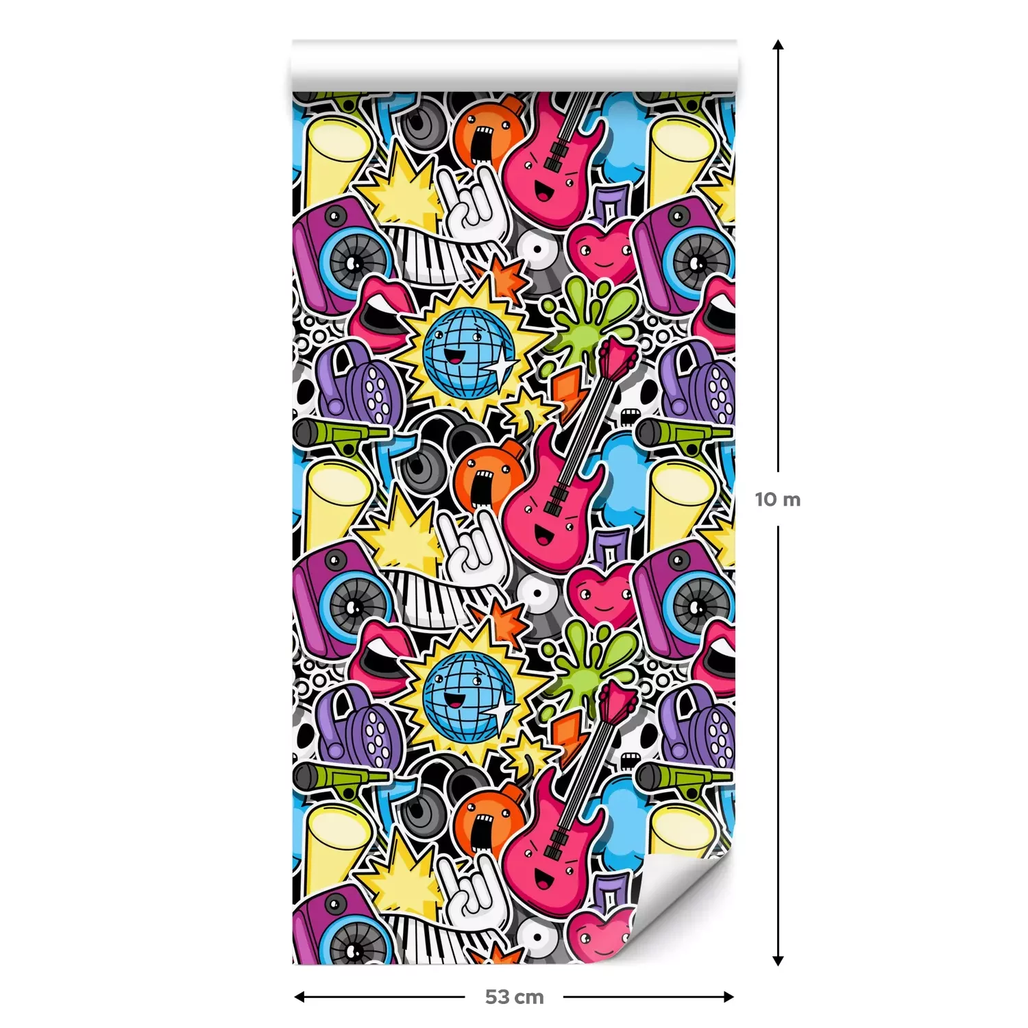 Een standaardrol behang heeft een afmeting van 0,53 m x 10 m, wat voldoende is om ongeveer 5 m² muur te bedekken.