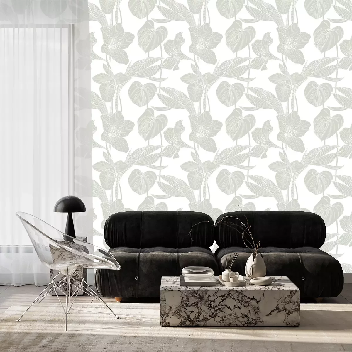Naadloze bloemmotiefBehang