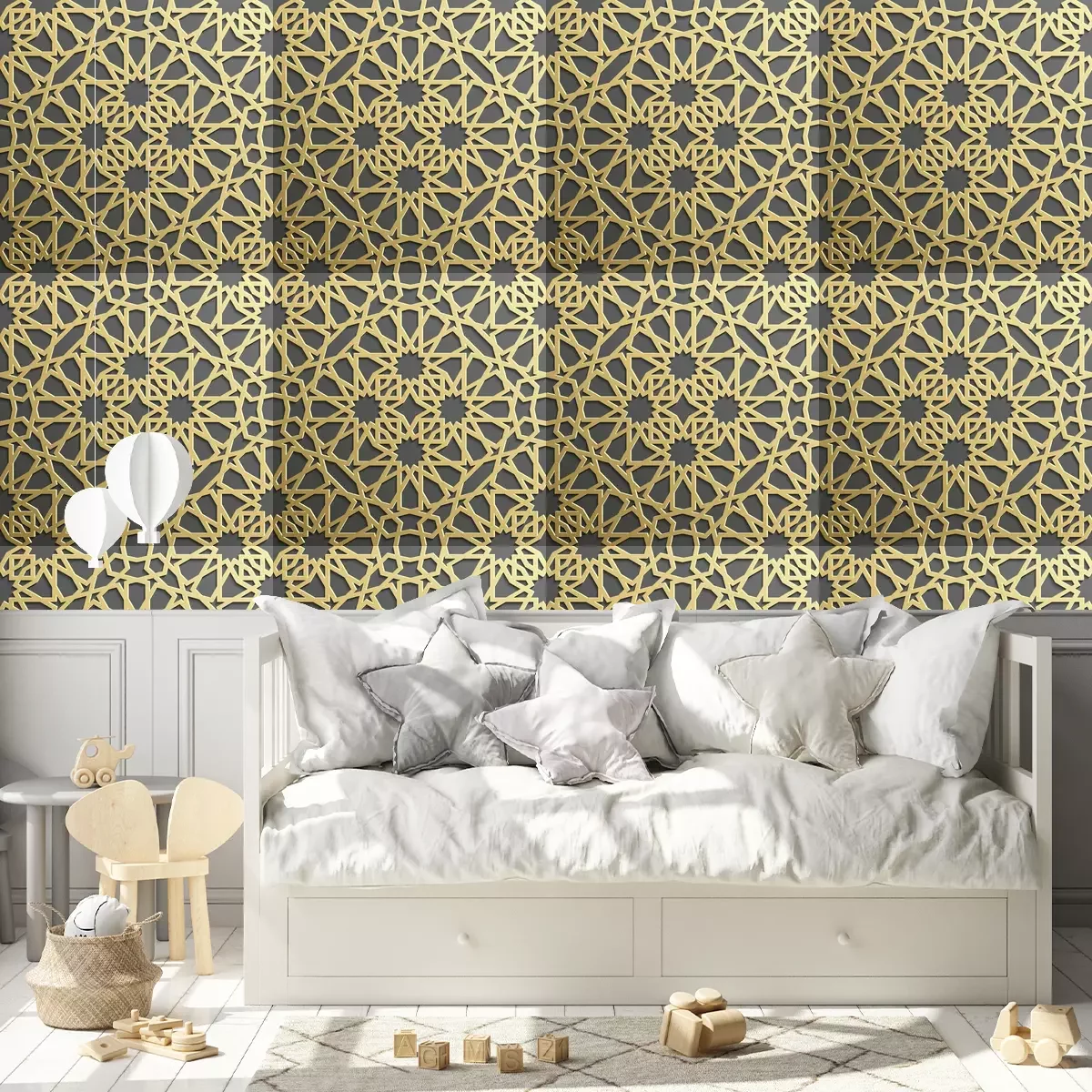 *Korting is niet van toepassing op lijmen, accessoires en cadeaubonnen.Het behang is gemaakt van hoogwaardig vliesmateriaal – duurzaam, stevig en eenvoudig aan te brengen. Op de productpagina vind je een gebruiksvriendelijke calculator die automatisch het aantal benodigde rollen berekent, zodat het winkelen nog makkelijker wordt. Het behang heeft een herhalend patroon dat we aanbieden in drie dichtheidsvarianten – normaal, gemiddeld en groot – waardoor je het motief perfect kunt afstemmen op de grootte van de ruimte. In onze winkel vind je duizenden ontwerpen, allemaal overzichtelijk ingedeeld in praktische categorieën.