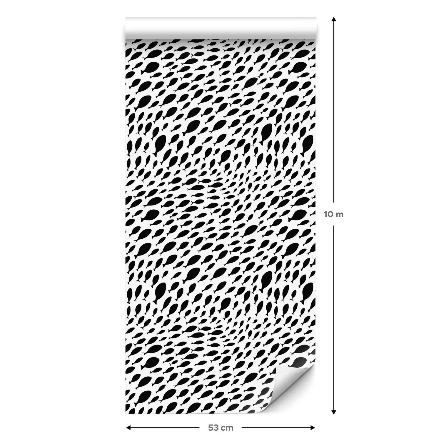 Een standaardrol behang heeft een afmeting van 0,53 m x 10 m, wat voldoende is om ongeveer 5 m² muur te bedekken.