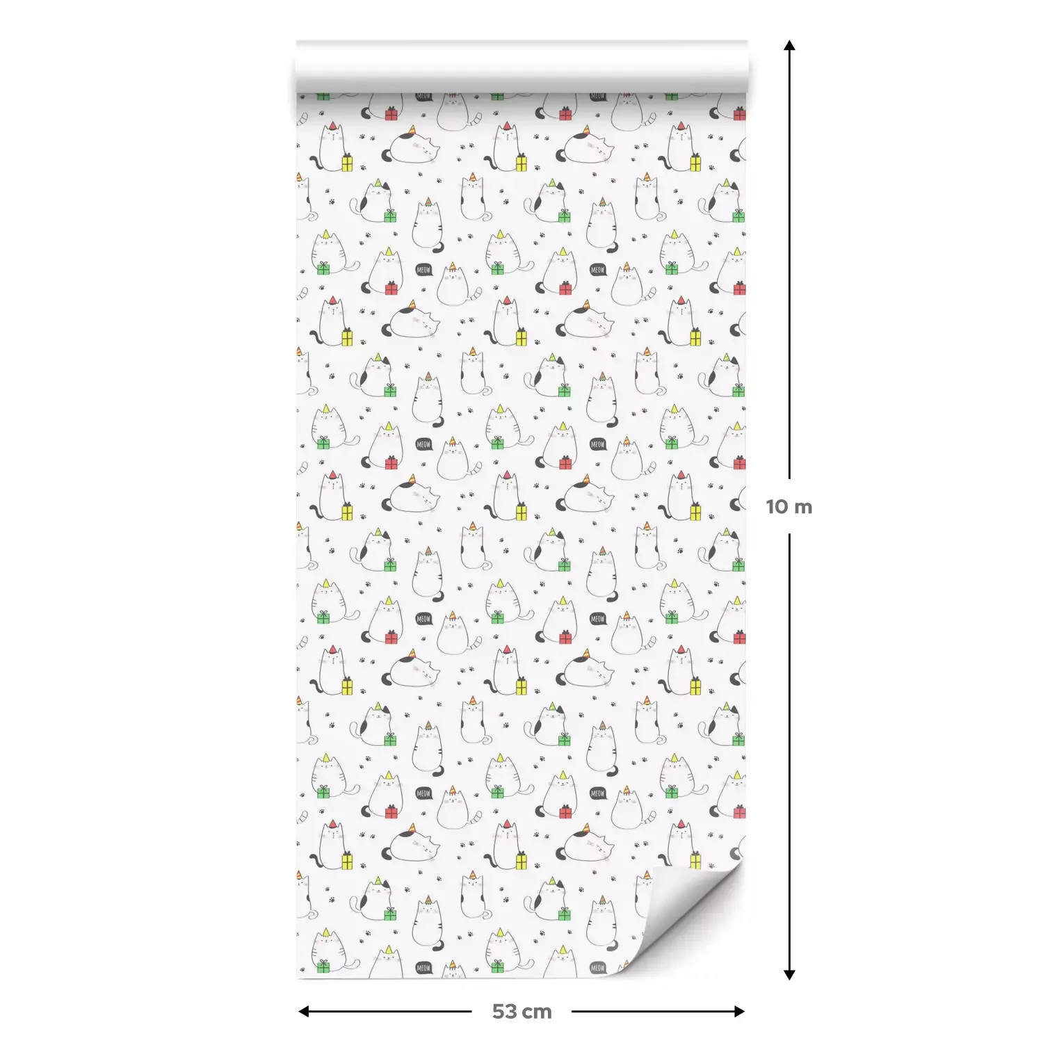 Een standaardrol behang heeft een afmeting van 0,53 m x 10 m, wat voldoende is om ongeveer 5 m² muur te bedekken.