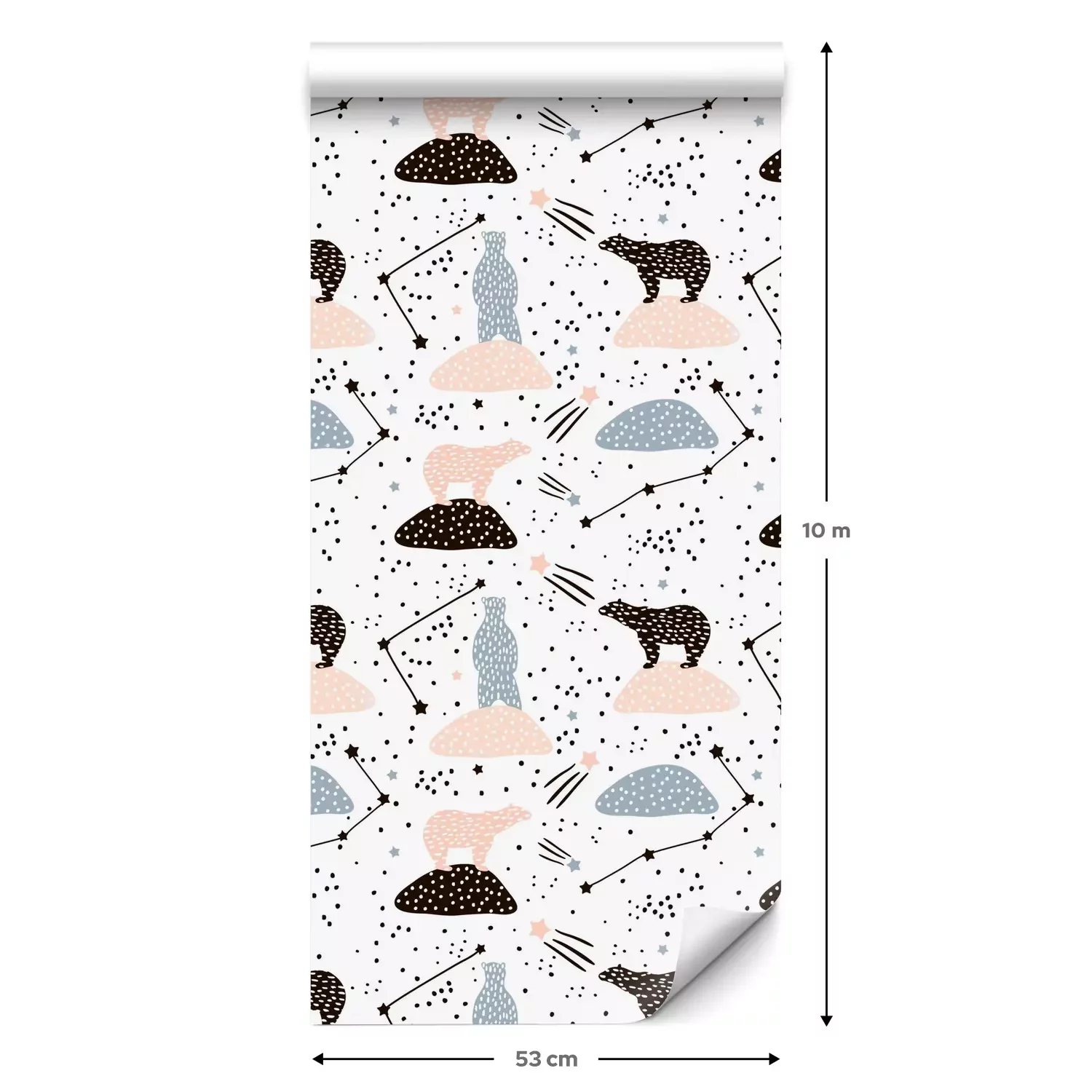Een standaardrol behang heeft een afmeting van 0,53 m x 10 m, wat voldoende is om ongeveer 5 m² muur te bedekken.
