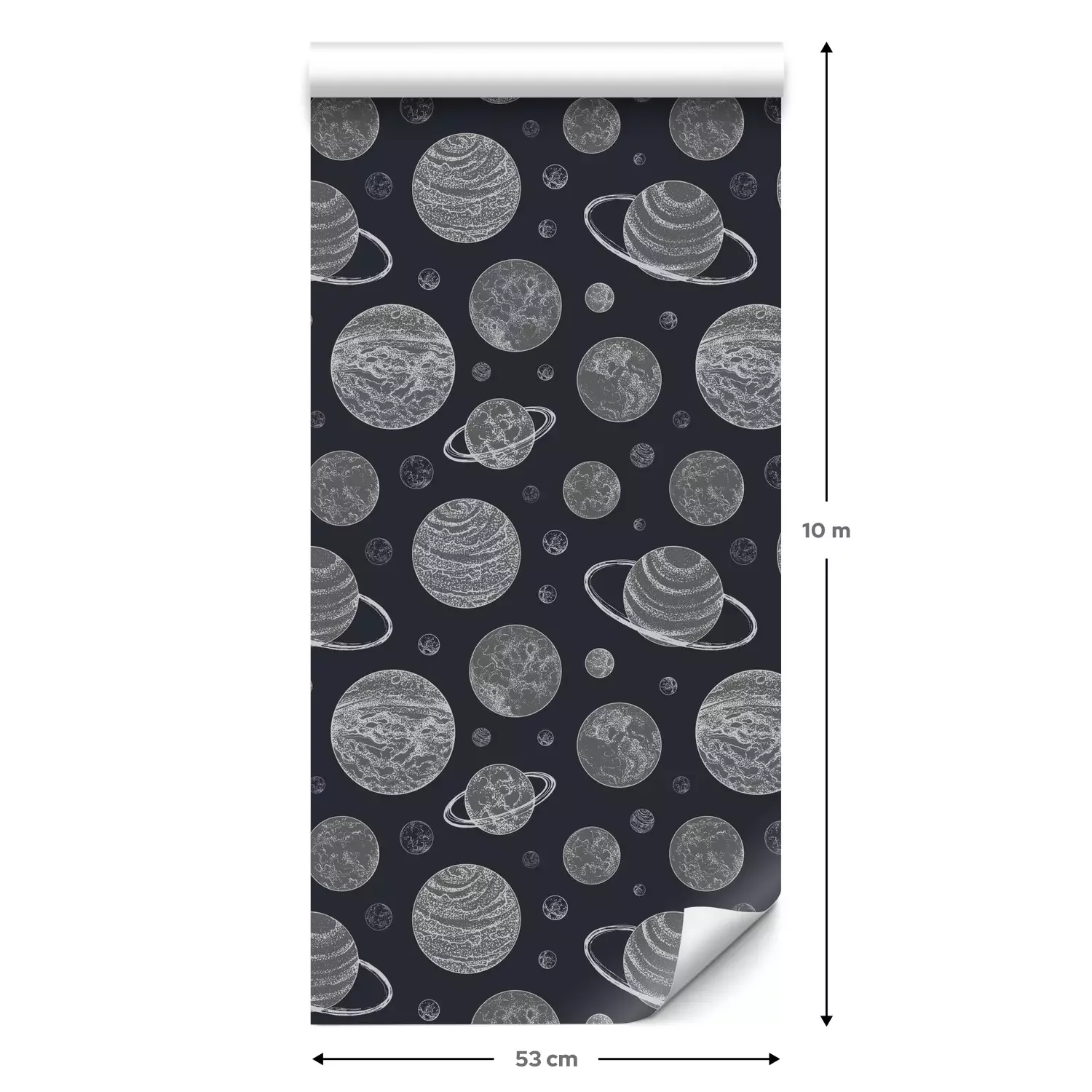 Een standaardrol behang heeft een afmeting van 0,53 m x 10 m, wat voldoende is om ongeveer 5 m² muur te bedekken.