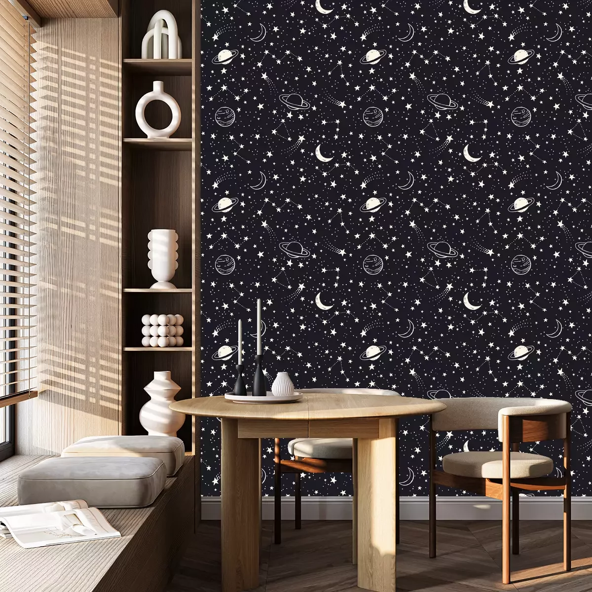 *Korting is niet van toepassing op lijmen, accessoires en cadeaubonnen.Het behang is gemaakt van hoogwaardig vliesmateriaal – duurzaam, stevig en eenvoudig aan te brengen. Op de productpagina vind je een gebruiksvriendelijke calculator die automatisch het aantal benodigde rollen berekent, zodat het winkelen nog makkelijker wordt. Het behang heeft een herhalend patroon dat we aanbieden in drie dichtheidsvarianten – normaal, gemiddeld en groot – waardoor je het motief perfect kunt afstemmen op de grootte van de ruimte. In onze winkel vind je duizenden ontwerpen, allemaal overzichtelijk ingedeeld in praktische categorieën.