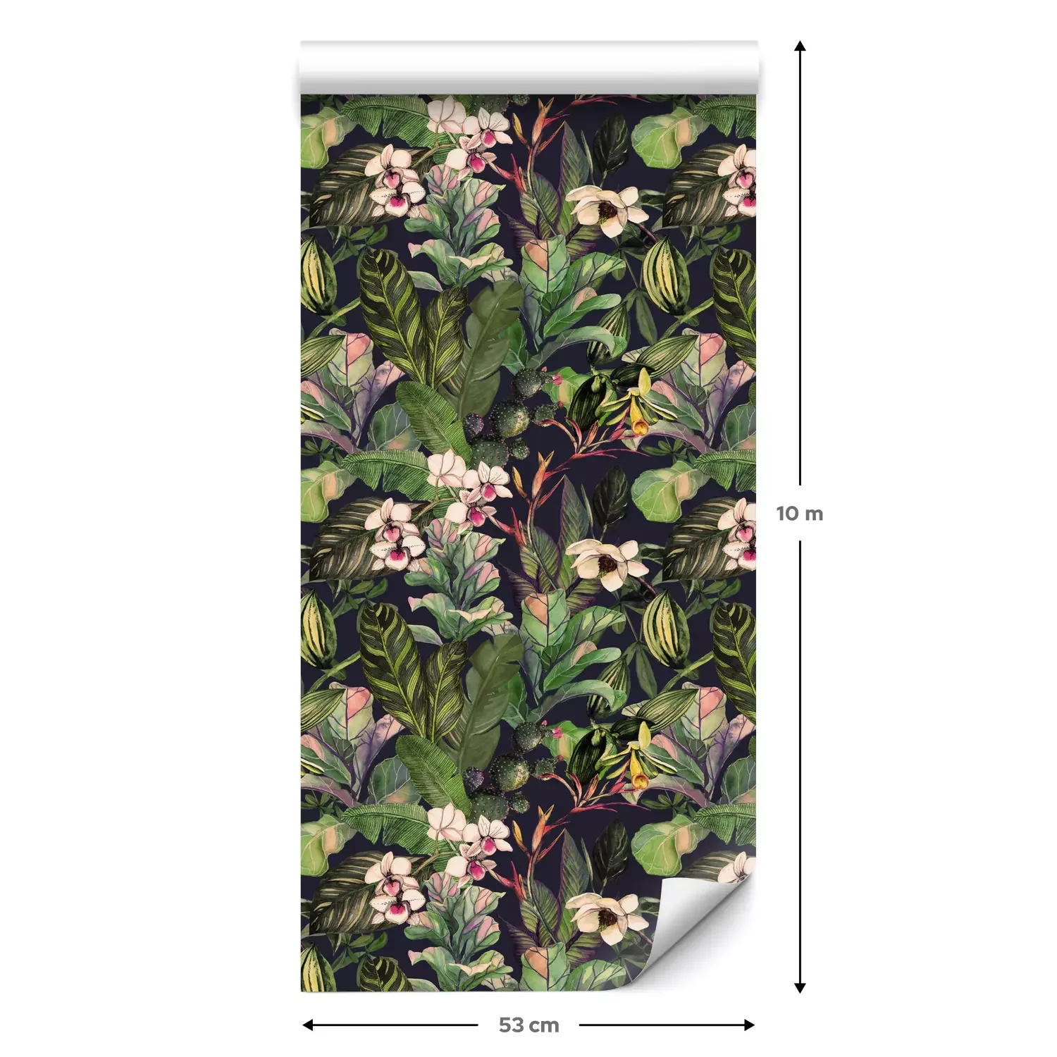 Een standaardrol behang heeft een afmeting van 0,53 m x 10 m, wat voldoende is om ongeveer 5 m² muur te bedekken.