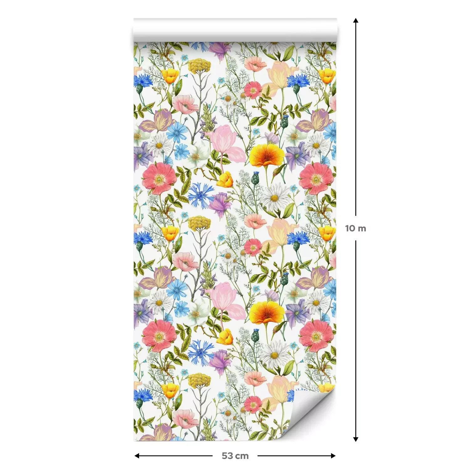 Een standaardrol behang heeft een afmeting van 0,53 m x 10 m, wat voldoende is om ongeveer 5 m² muur te bedekken.