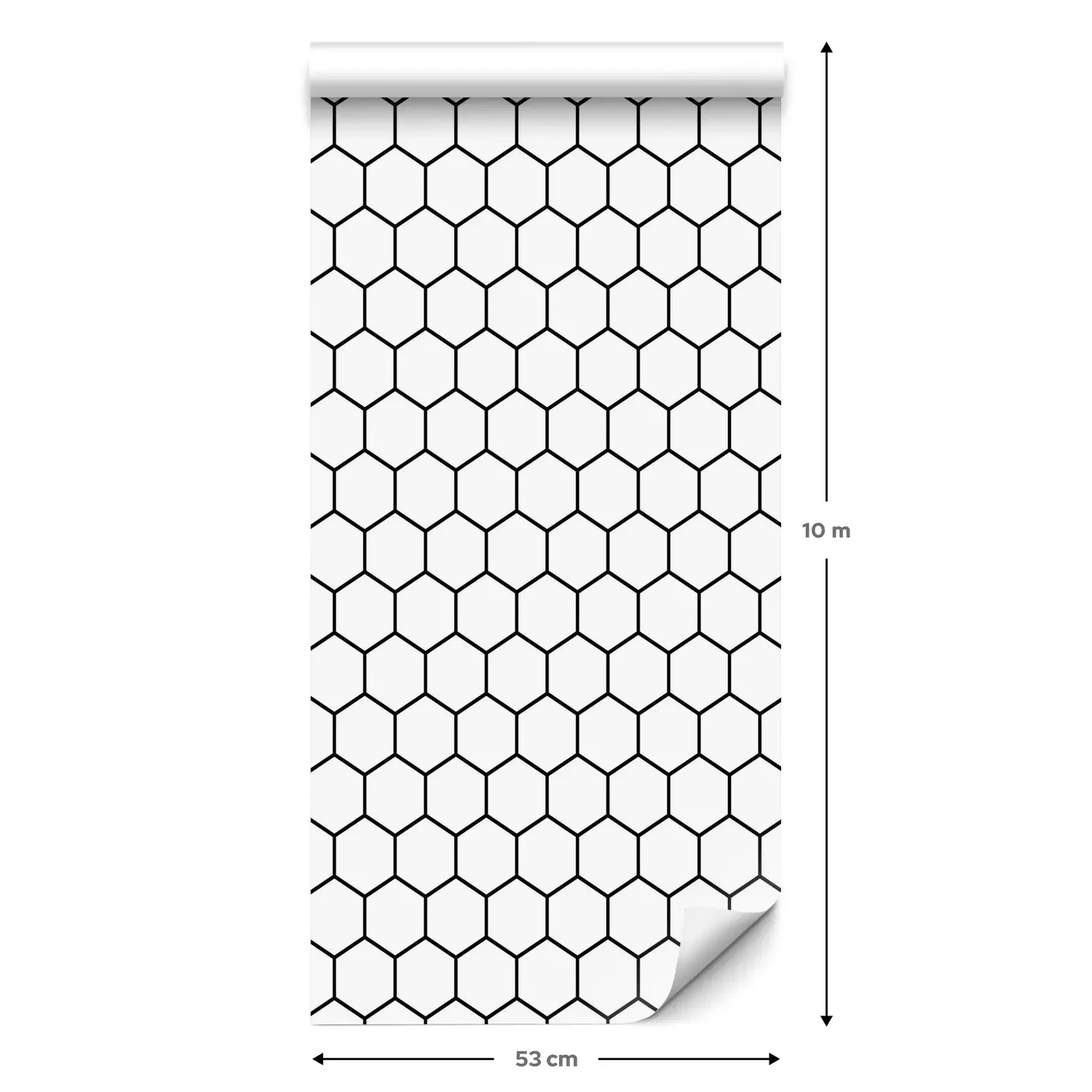 Een standaardrol behang heeft een afmeting van 0,53 m x 10 m, wat voldoende is om ongeveer 5 m² muur te bedekken.