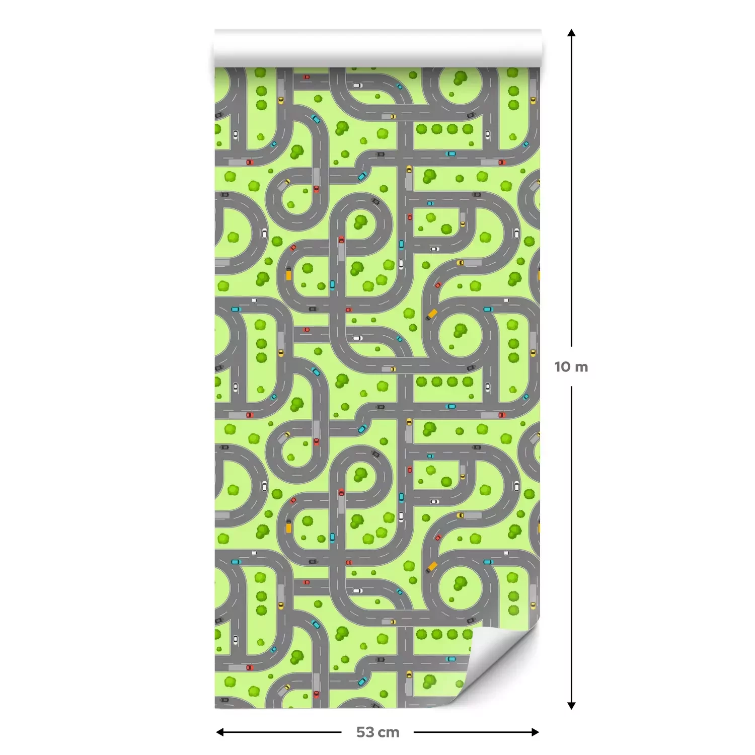 Een standaardrol behang heeft een afmeting van 0,53 m x 10 m, wat voldoende is om ongeveer 5 m² muur te bedekken.