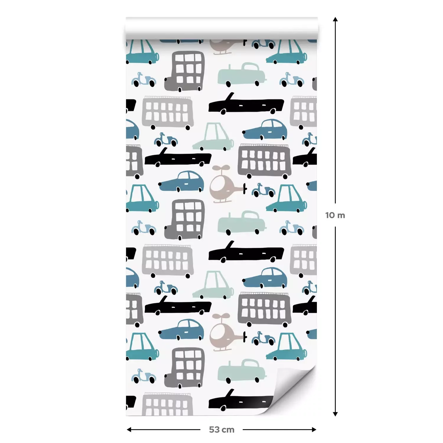 Een standaardrol behang heeft een afmeting van 0,53 m x 10 m, wat voldoende is om ongeveer 5 m² muur te bedekken.