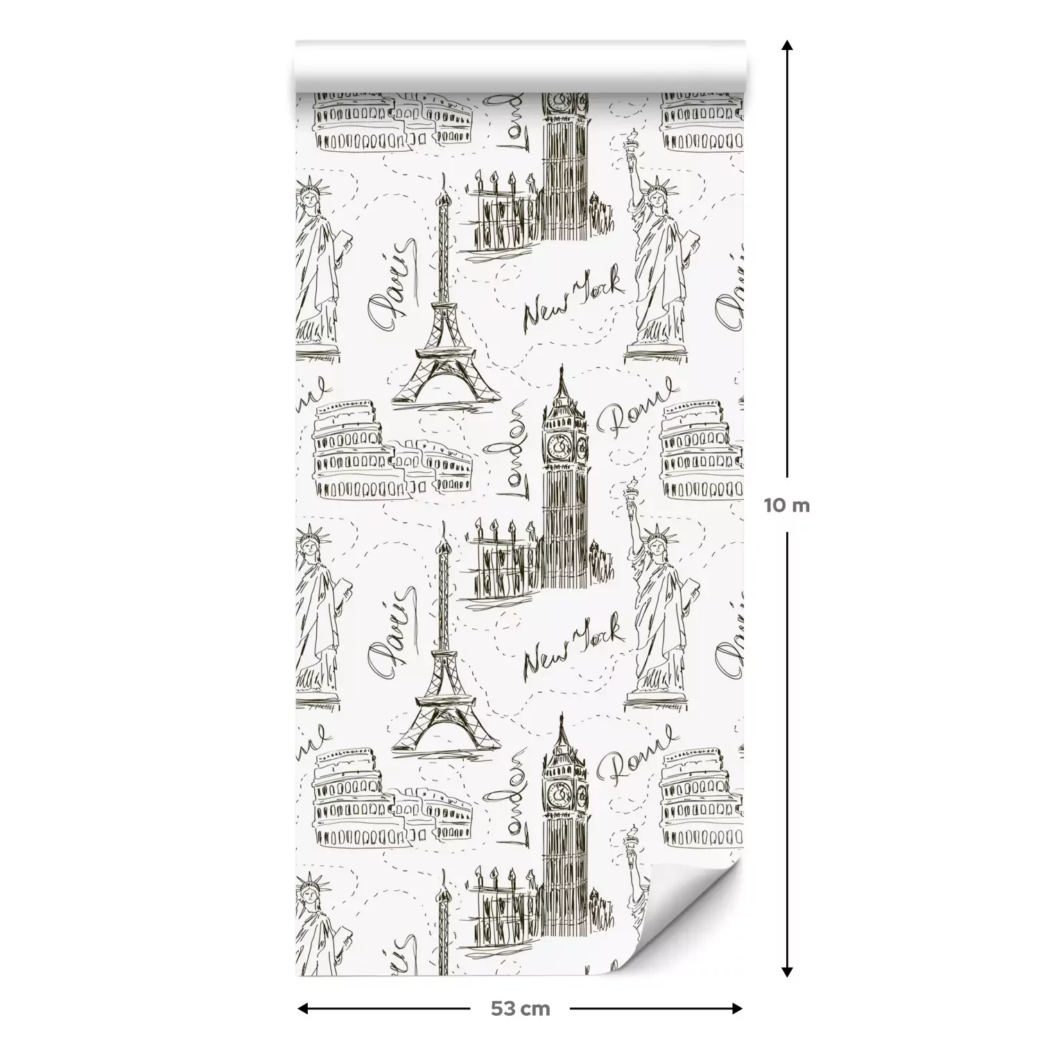Een standaardrol behang heeft een afmeting van 0,53 m x 10 m, wat voldoende is om ongeveer 5 m² muur te bedekken.