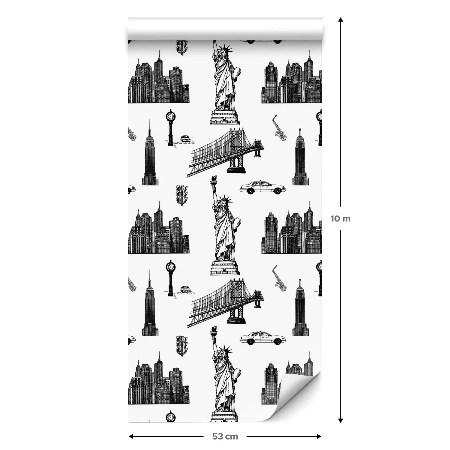 Een standaardrol behang heeft een afmeting van 0,53 m x 10 m, wat voldoende is om ongeveer 5 m² muur te bedekken.
