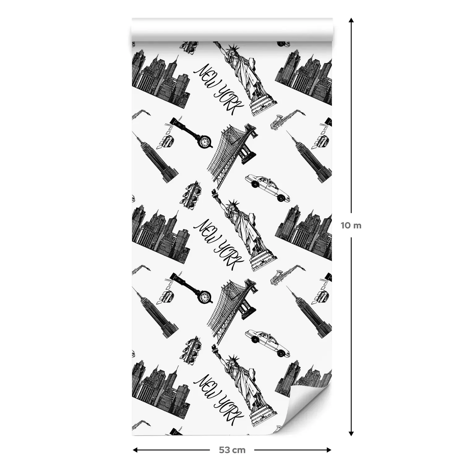 Een standaardrol behang heeft een afmeting van 0,53 m x 10 m, wat voldoende is om ongeveer 5 m² muur te bedekken.