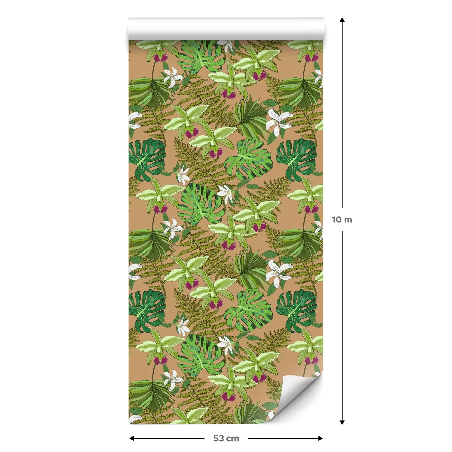 Een standaardrol behang heeft een afmeting van 0,53 m x 10 m, wat voldoende is om ongeveer 5 m² muur te bedekken.