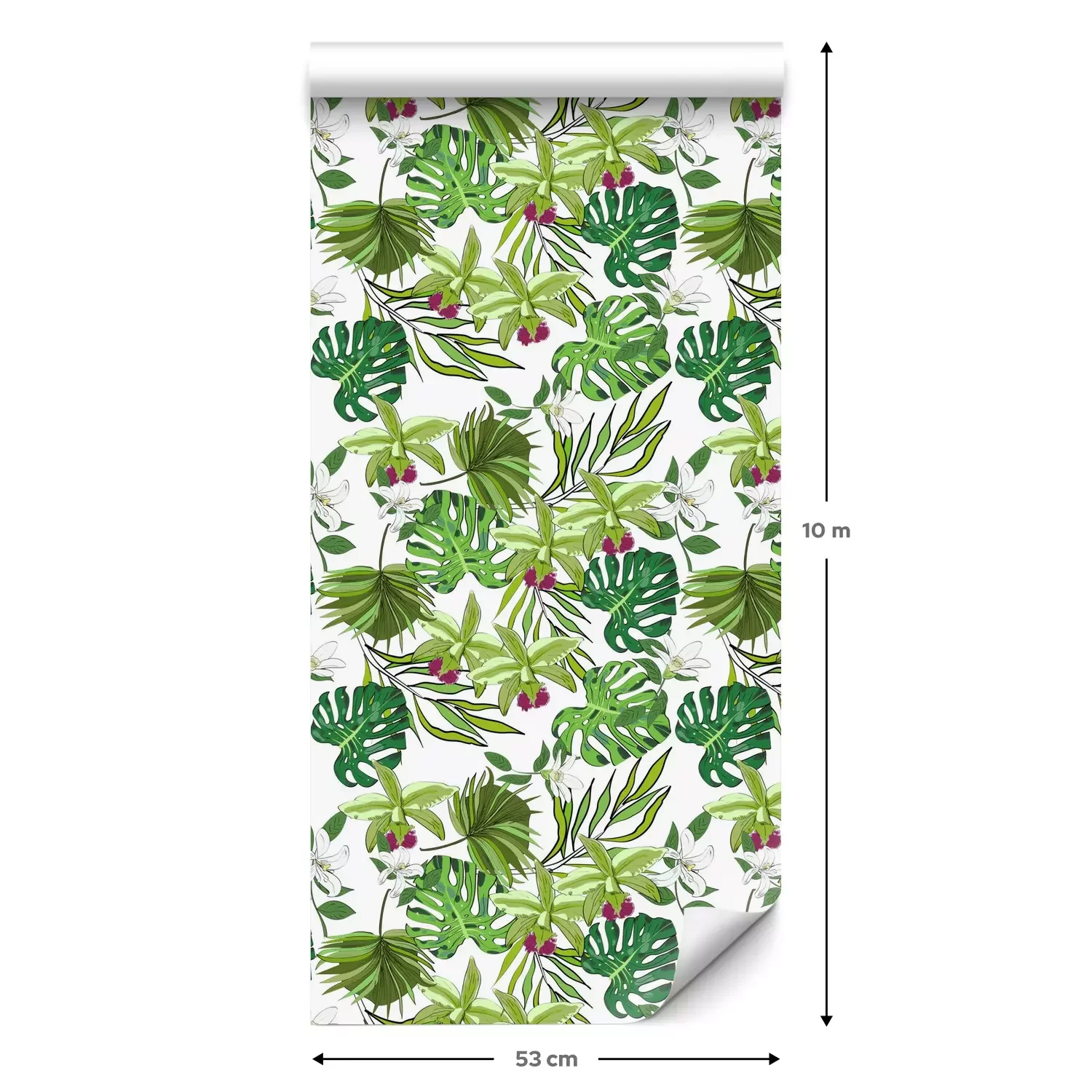 Een standaardrol behang heeft een afmeting van 0,53 m x 10 m, wat voldoende is om ongeveer 5 m² muur te bedekken.