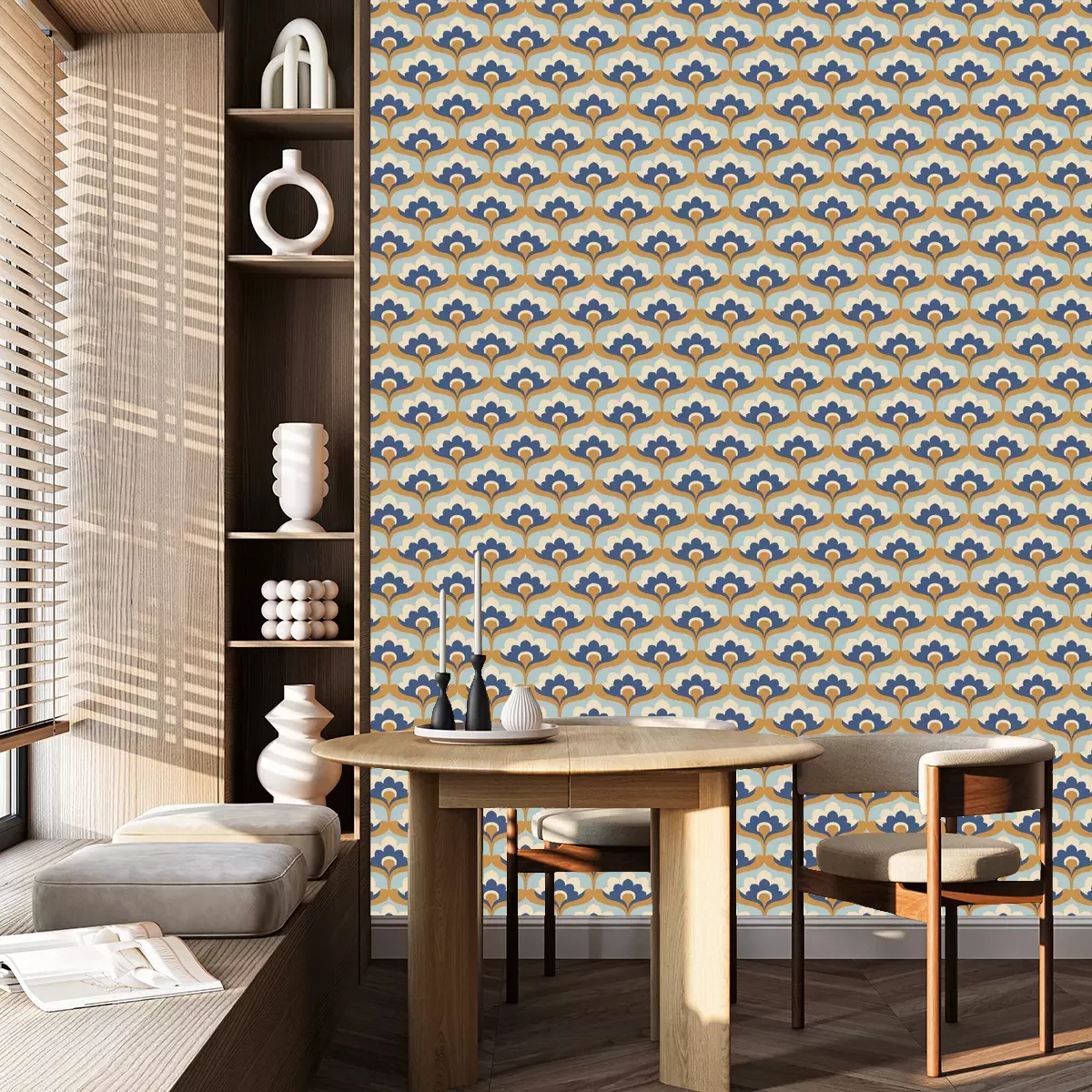 Retro blauwe schelpenBehang
