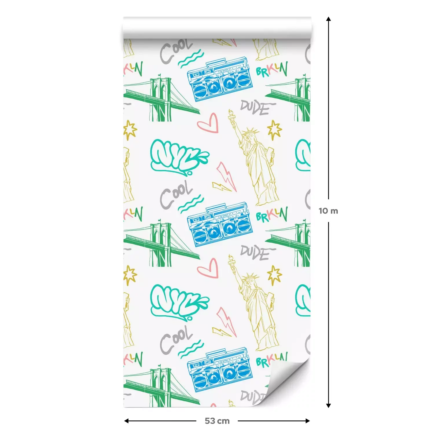 Een standaardrol behang heeft een afmeting van 0,53 m x 10 m, wat voldoende is om ongeveer 5 m² muur te bedekken.