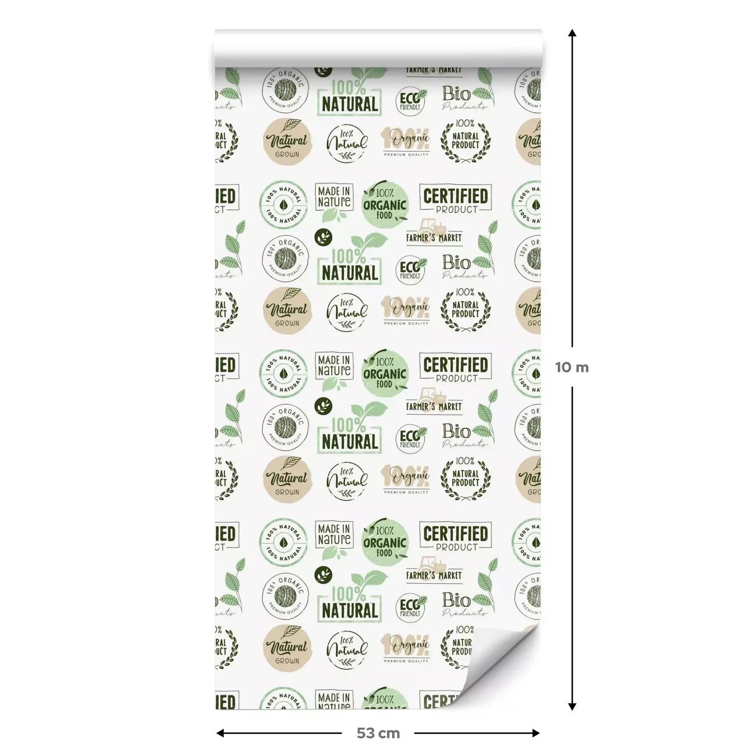 Een standaardrol behang heeft een afmeting van 0,53 m x 10 m, wat voldoende is om ongeveer 5 m² muur te bedekken.