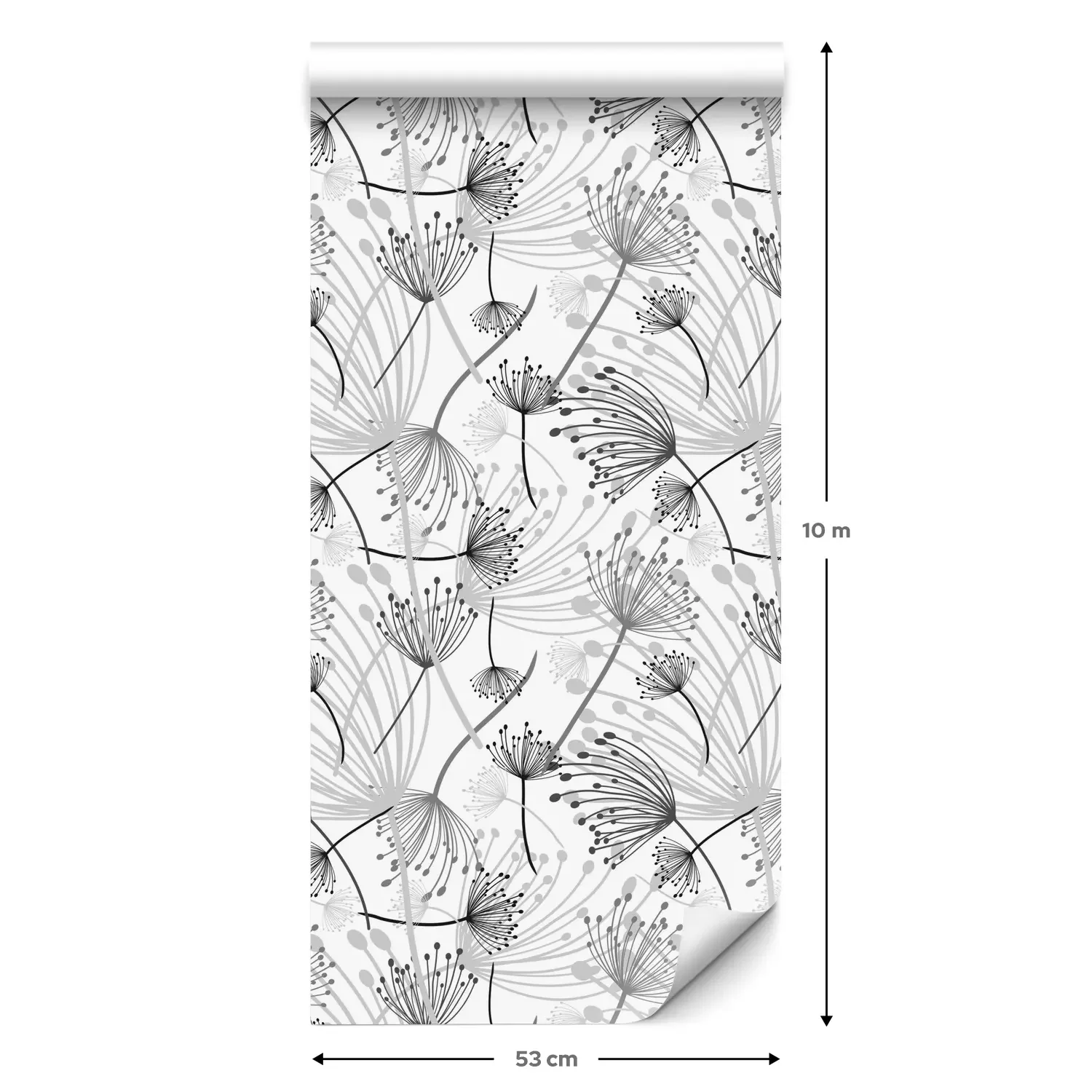 Een standaardrol behang heeft een afmeting van 0,53 m x 10 m, wat voldoende is om ongeveer 5 m² muur te bedekken.
