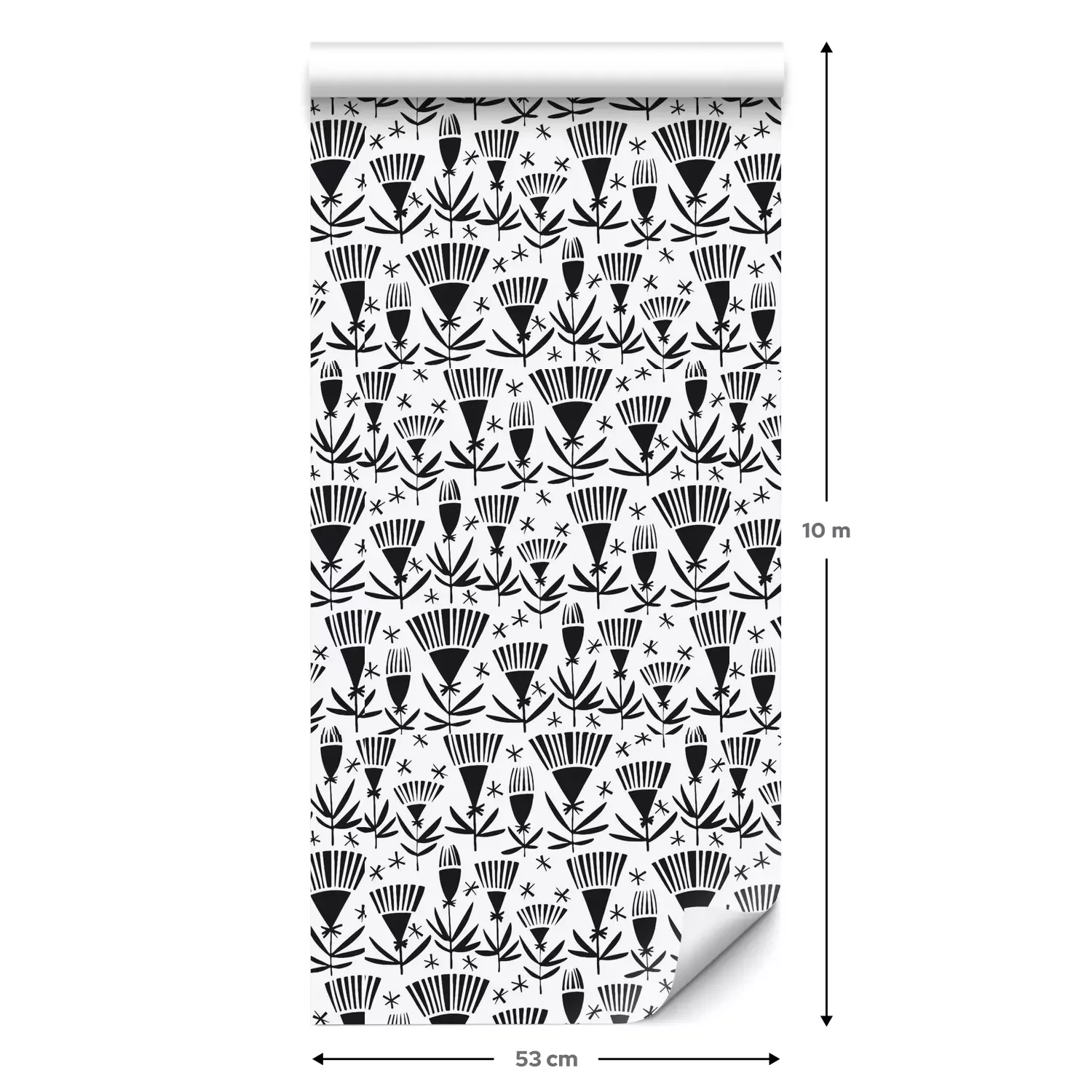 Een standaardrol behang heeft een afmeting van 0,53 m x 10 m, wat voldoende is om ongeveer 5 m² muur te bedekken.