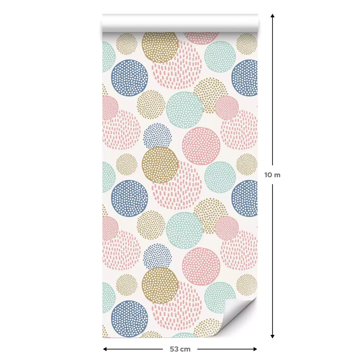 Een standaardrol behang heeft een afmeting van 0,53 m x 10 m, wat voldoende is om ongeveer 5 m² muur te bedekken.