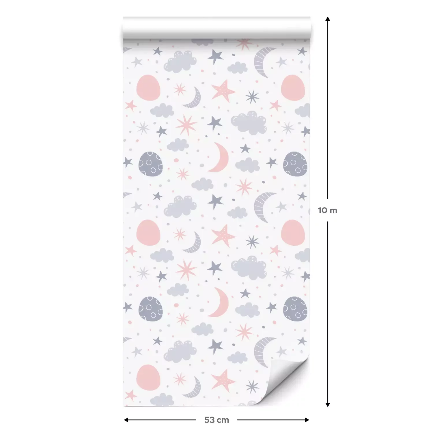 Een standaardrol behang heeft een afmeting van 0,53 m x 10 m, wat voldoende is om ongeveer 5 m² muur te bedekken.