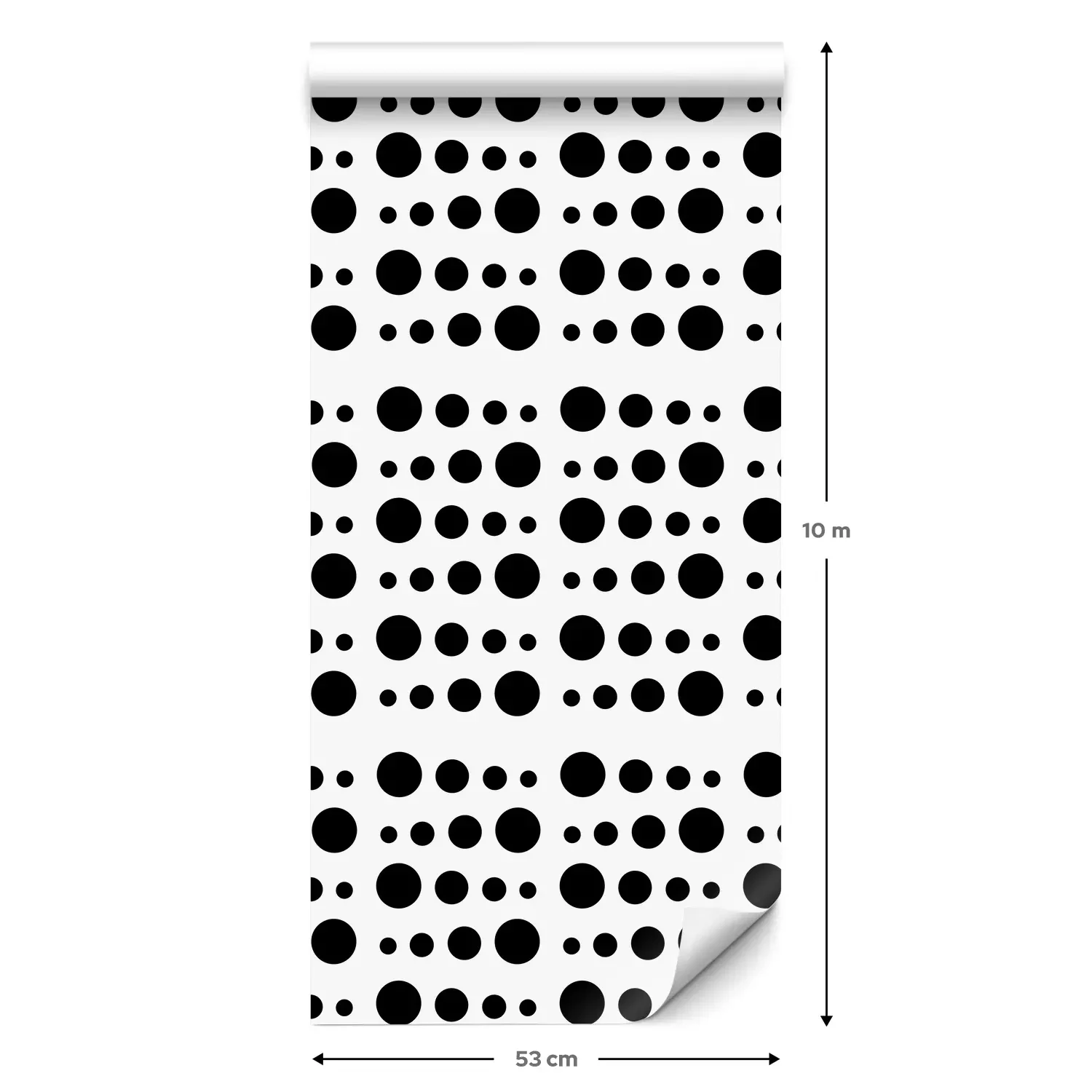 Een standaardrol behang heeft een afmeting van 0,53 m x 10 m, wat voldoende is om ongeveer 5 m² muur te bedekken.
