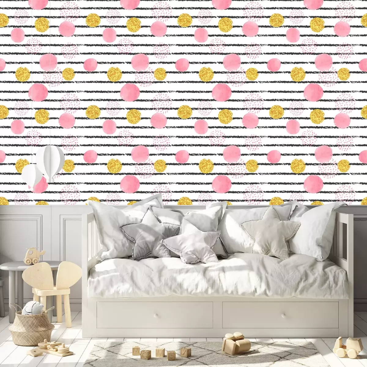 *Korting is niet van toepassing op lijmen, accessoires en cadeaubonnen.Het behang is gemaakt van hoogwaardig vliesmateriaal – duurzaam, stevig en eenvoudig aan te brengen. Op de productpagina vind je een gebruiksvriendelijke calculator die automatisch het aantal benodigde rollen berekent, zodat het winkelen nog makkelijker wordt. Het behang heeft een herhalend patroon dat we aanbieden in drie dichtheidsvarianten – normaal, gemiddeld en groot – waardoor je het motief perfect kunt afstemmen op de grootte van de ruimte. In onze winkel vind je duizenden ontwerpen, allemaal overzichtelijk ingedeeld in praktische categorieën.